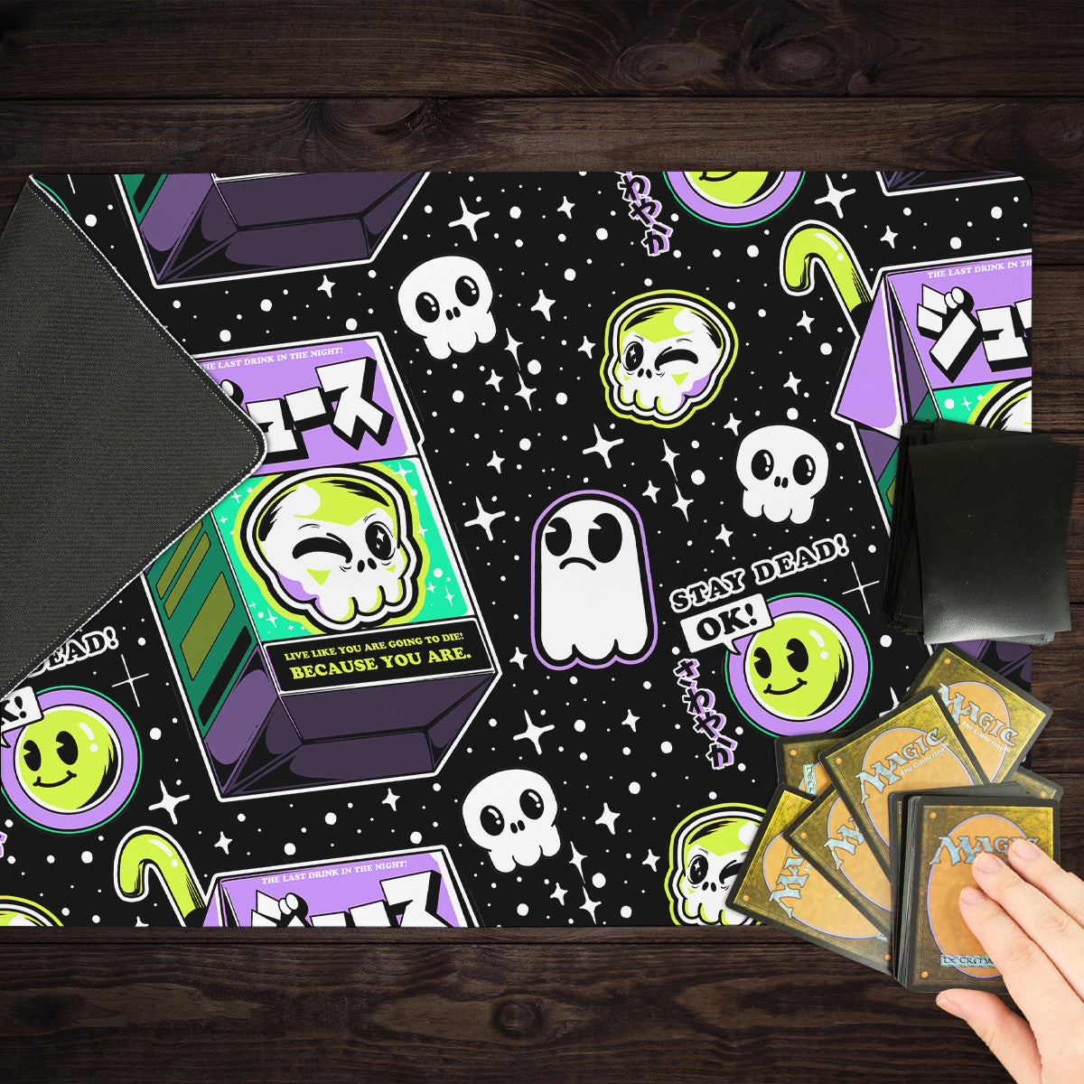 Get ready to squeeze out the competition and enjoy a taste of victory on Ilustrata’s Japanese Juice playmat! With a burst of delicious colors and an artistic fusion of Japanese elements, every game becomes a flavorful adventure. Whether you're summoning creatures, casting spells, or strategizing your way to victory, this playmat can add an extra splash of excitement to your TCG duels. Roll the dice, draw your cards, and let the juice-infused magic inspire your gameplay. Elevate your gaming experience with this playmat that's as unique and exciting as your quests. Get yours now and let the gaming begin!