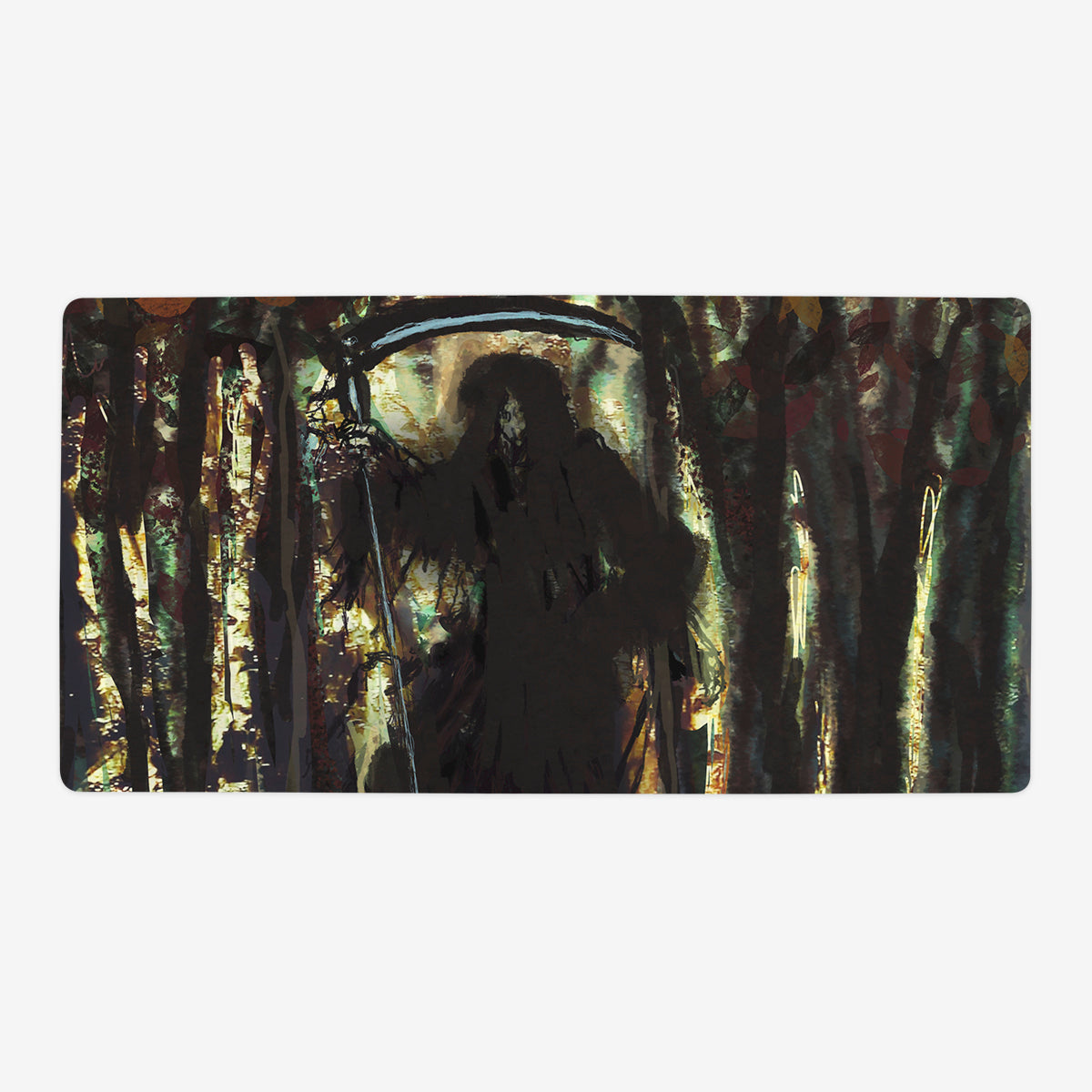 Oversized Playmat measures at 28” x 14” inches and is 1/16 of an inch thick. It’s made with a smooth cloth top and strong rubber backing.