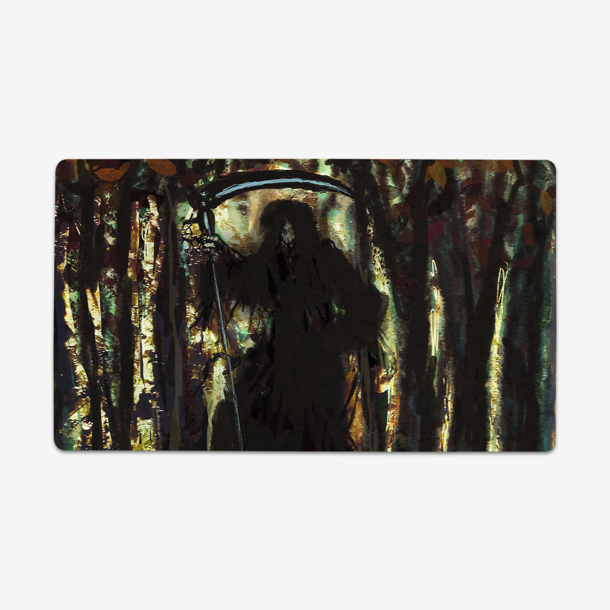 Standard Playmat measures at 24” x 14” inches and is 1/16 of an inch thick. It’s made with a smooth cloth top and strong rubber backing.
