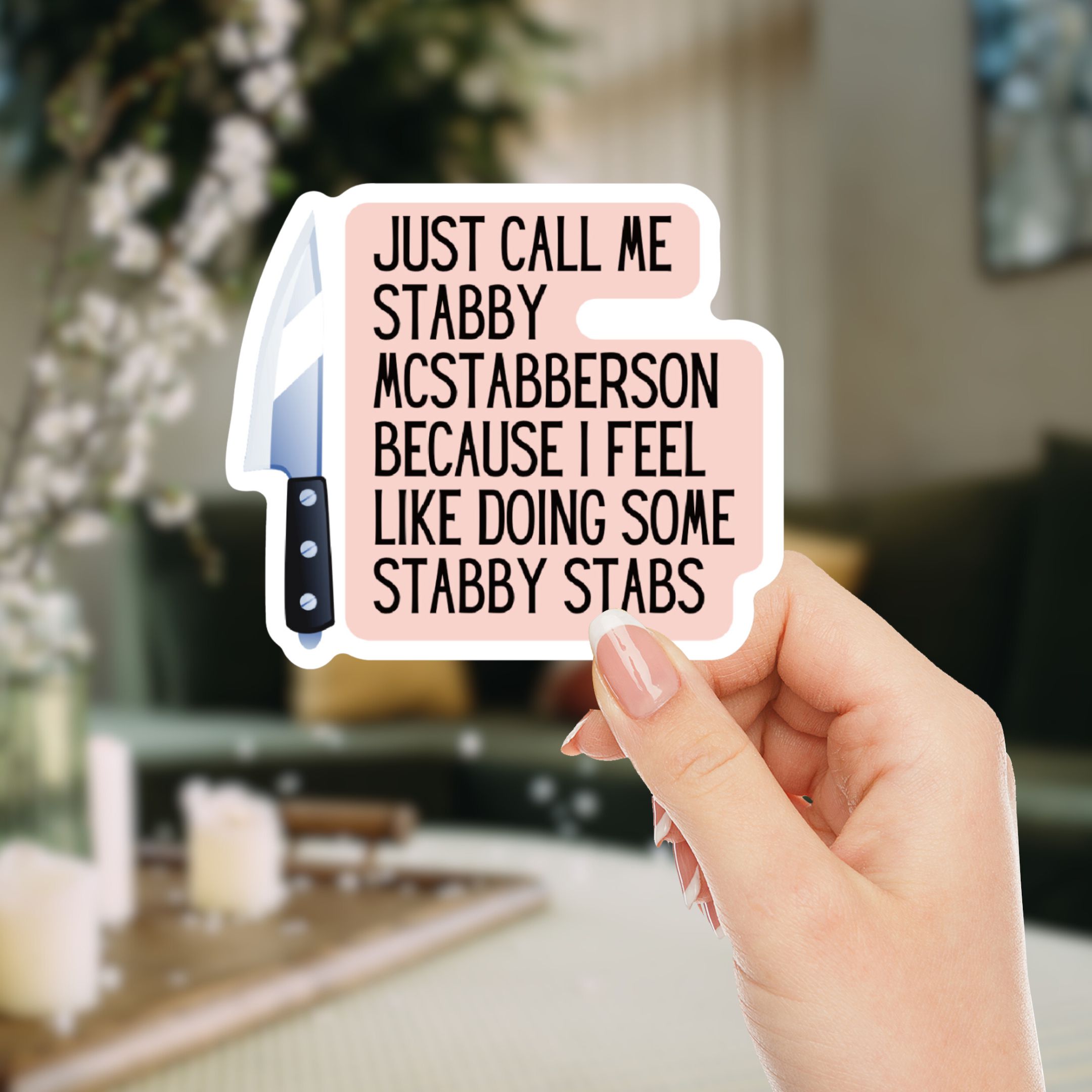 Reads: "Just Call Me Stabby McStabberson Because I Feel Like Doing Some Stabby Stabs".