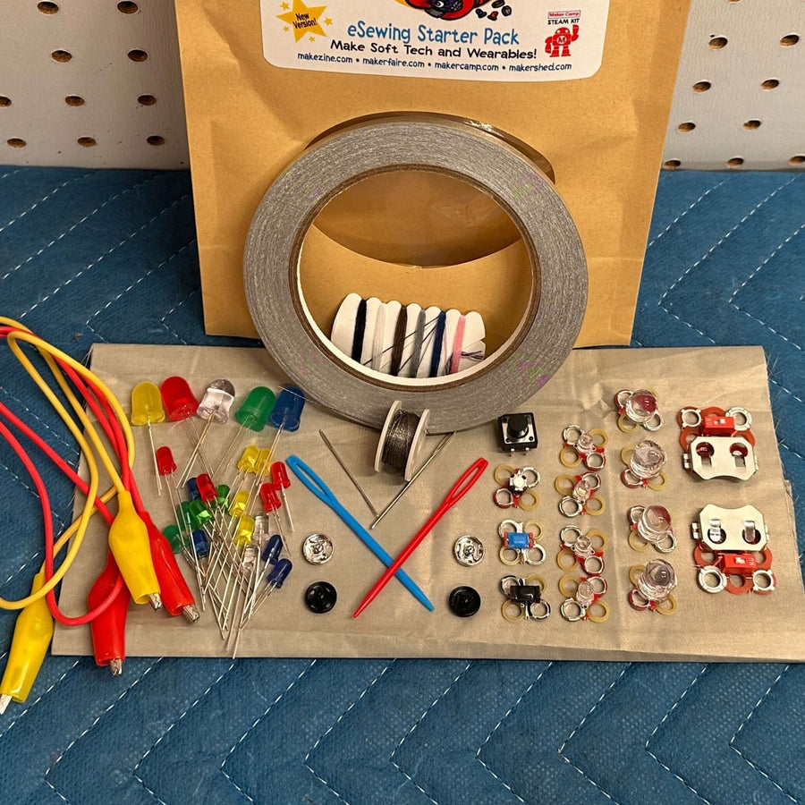 These kits are intended for makers ages 10 and up or under adult supervision, due to the small parts and dexterity concerns with needles. Coin cell batteries of any type can be extremely dangerous if swallowed and caution is always recommended. All projects are powered at 3V and have no danger of shocking or harming users. Hand wash projects only and let air dry. Do not use Conductive Thread with a sewing machine, hand stitch only. Parts may vary in appearance or color.
