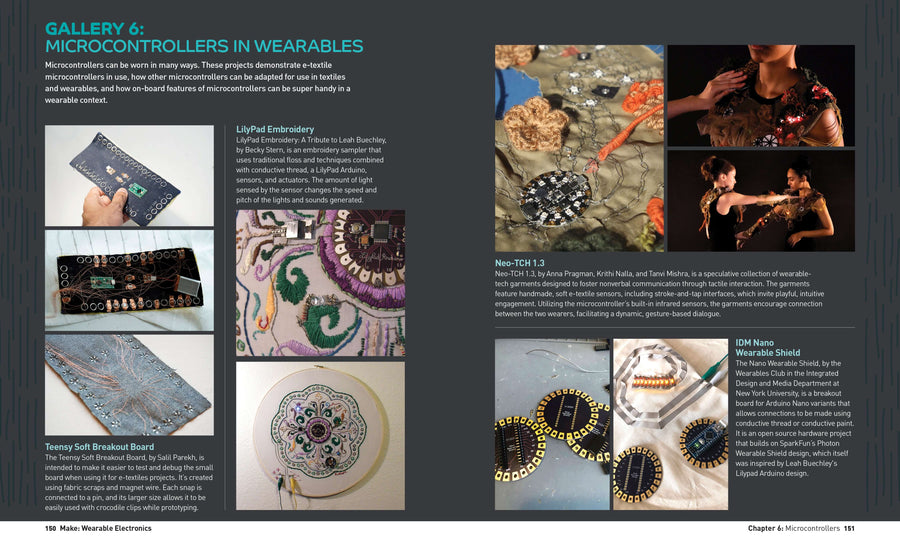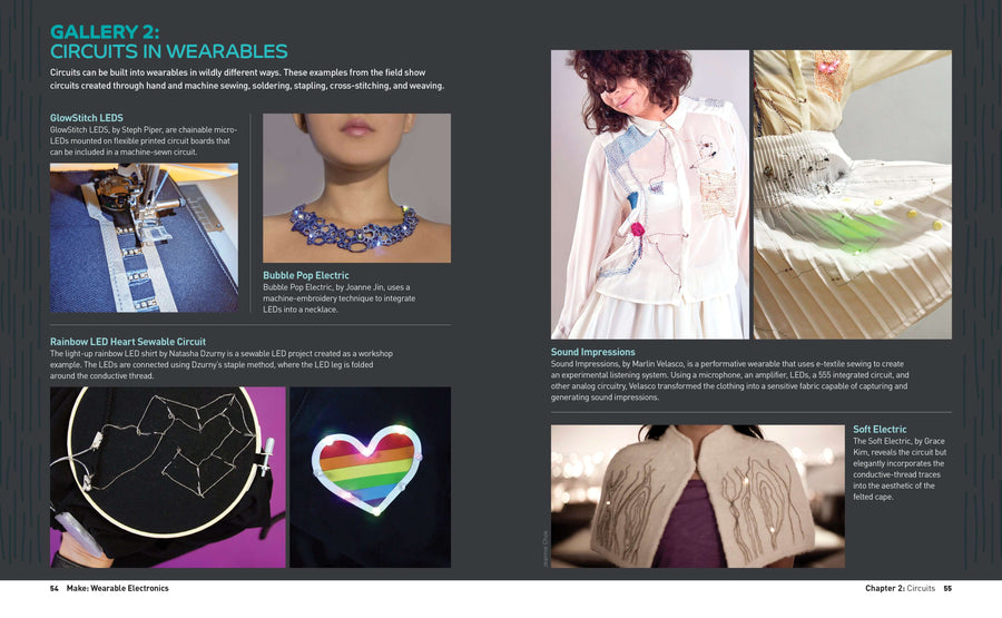 Artists, designers, and researchers also share their inspiring wearable-electronics inventions from around the world, including a futuristic textile that changes color when the International Space Station passes overhead, a jacket that senses and displays noise levels in loud environments, and sound-controlled LED jewelry worn on tour by Grammy-winning musician Imogen Heap.