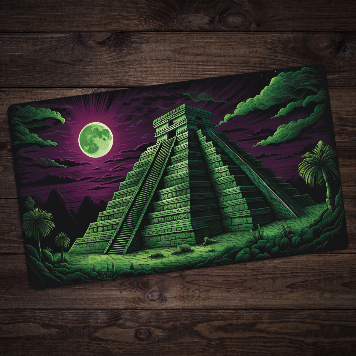 Oversized Playmat measures at 28” x 14” inches and is 1/16 of an inch thick. It’s made with a smooth cloth top and strong rubber backing.