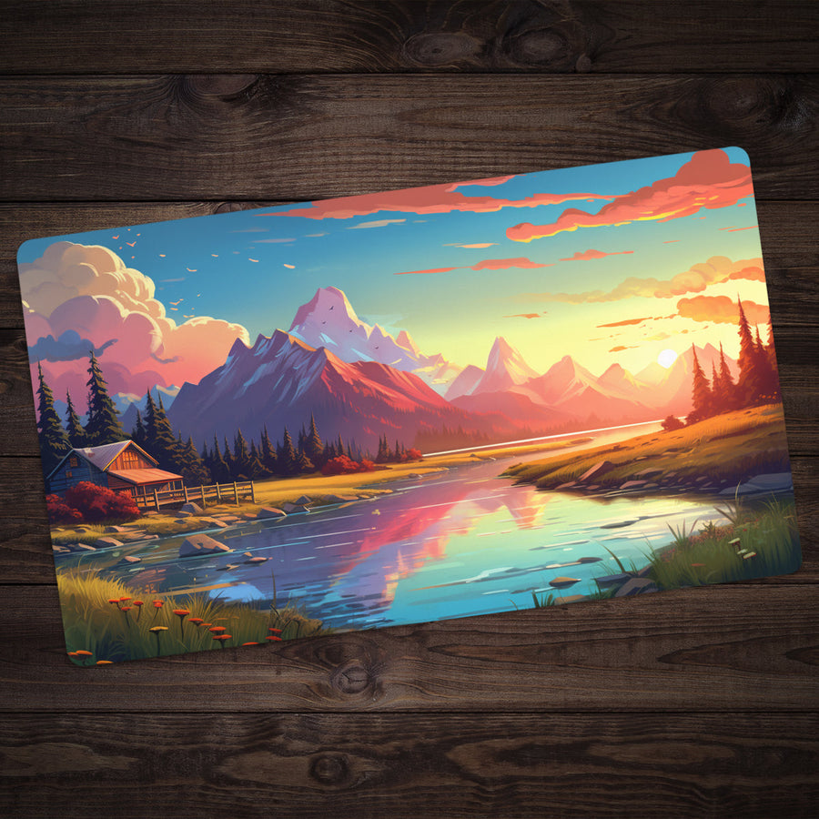 Standard Playmat measures at 24” x 14” inches and is 1/16 of an inch thick. It’s made with a smooth cloth top and strong rubber backing.