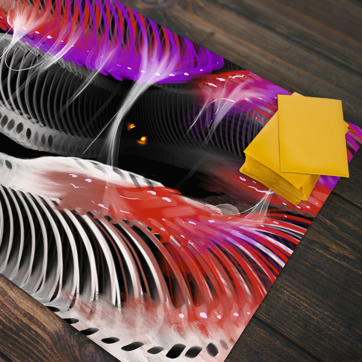 All Inked playmats are specially designed for you to play your favorite card games with style and finesse. Made with a smooth cloth top and rubber bottom, our mats allow you to pick up and move your cards with ease. That means no more sliding cards off the edges of tables or struggling to flip cards over at the most pivotal moment of battle. And with different sizing options available - Standard and Oversized - our playmats are made to fit every style of play. So, if you’re the type of player who requires a little extra elbow room, there’s a mat for that! No matter the size, these mats are ideal for keeping your precious cards and sleeves in good condition as well. When it comes to crafting the perfect playmat, quality and care is the name of the game. With a playmat like this, you’ll be hard-pressed to find anything else that comes close!