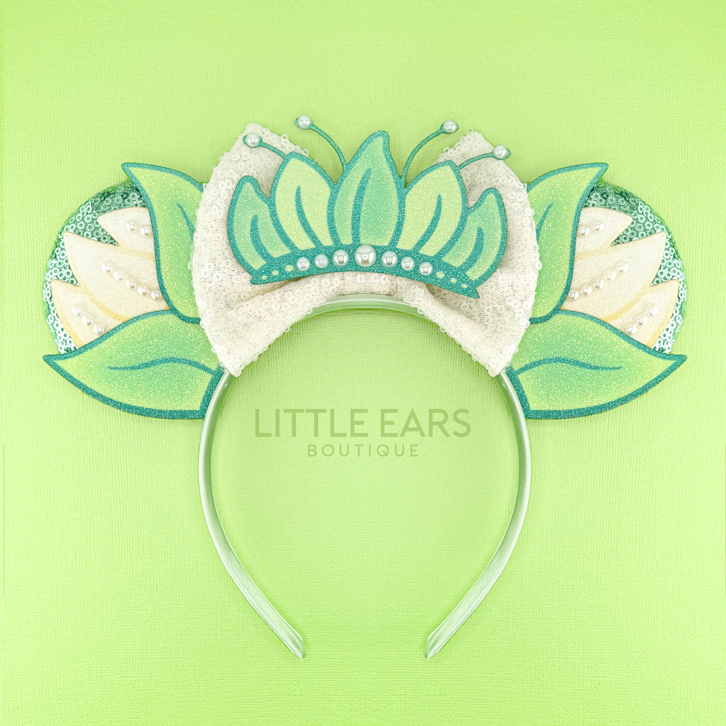 SIZE AND COLORThe size of the ears measures between 9-11 inches, and the bows are about 5 inches.