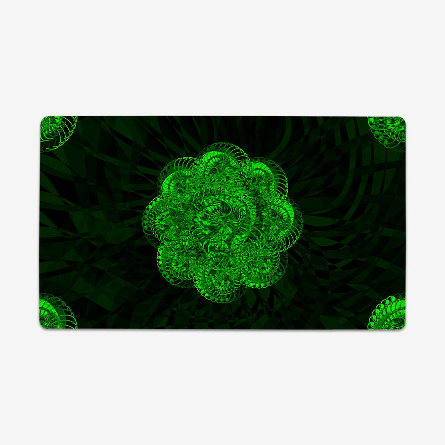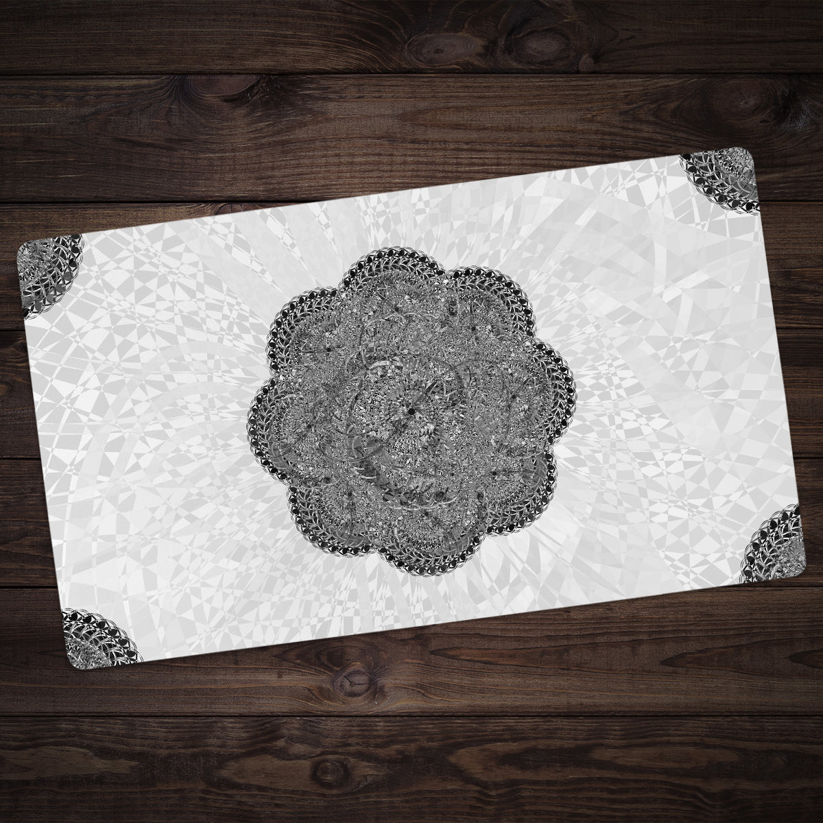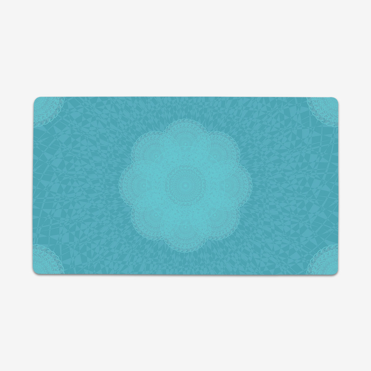 Standard Playmat measures at 24” x 14” inches and is 1/16 of an inch thick. It’s made with a smooth cloth top and strong rubber backing.