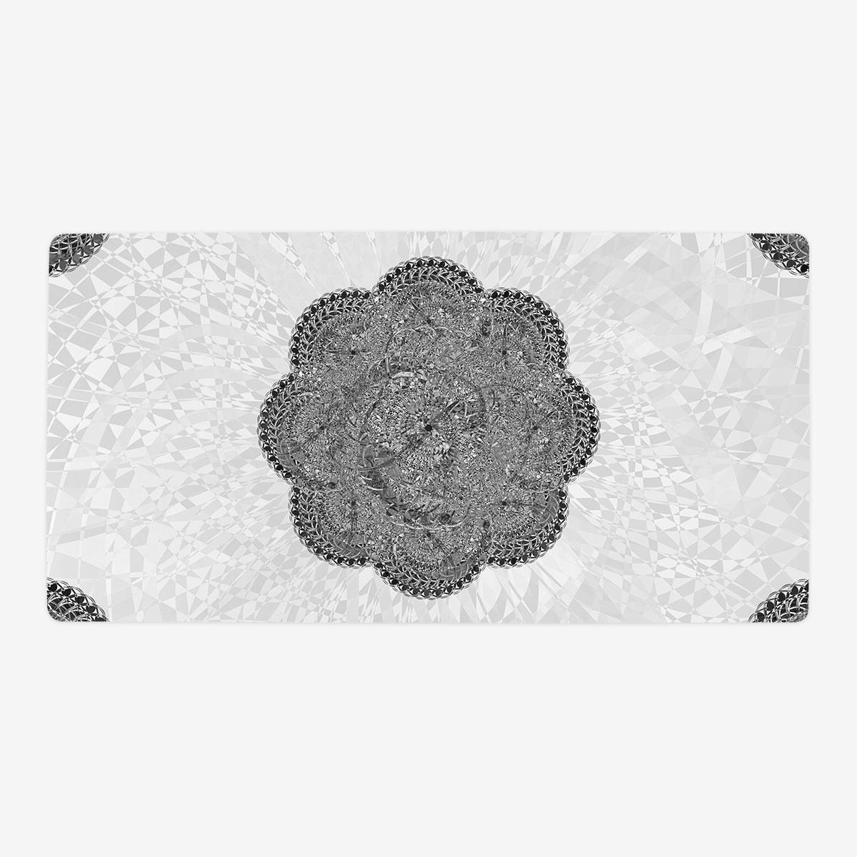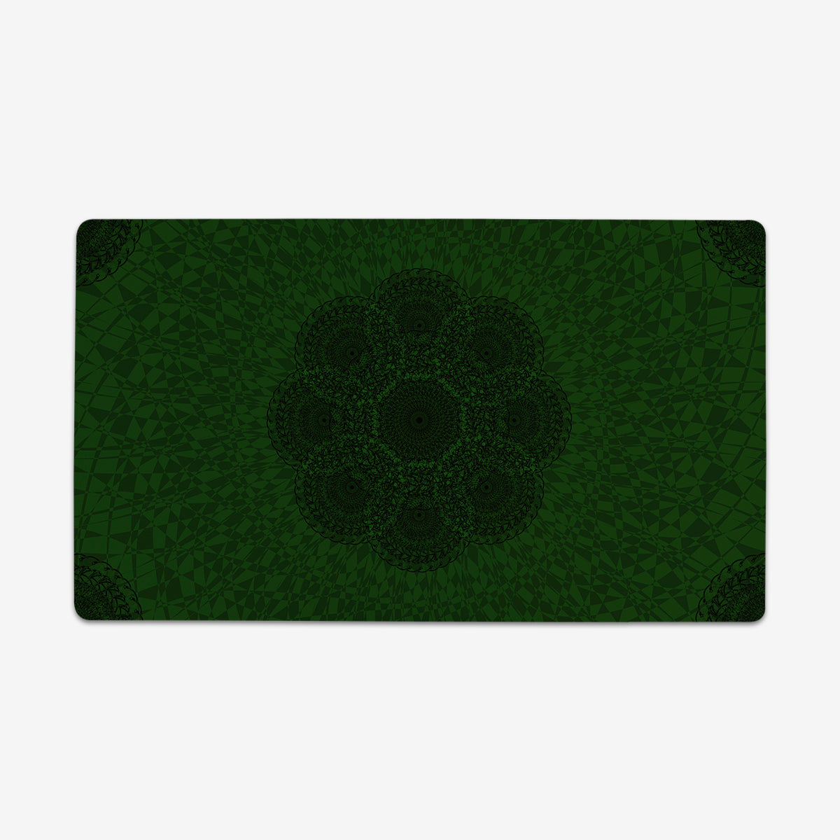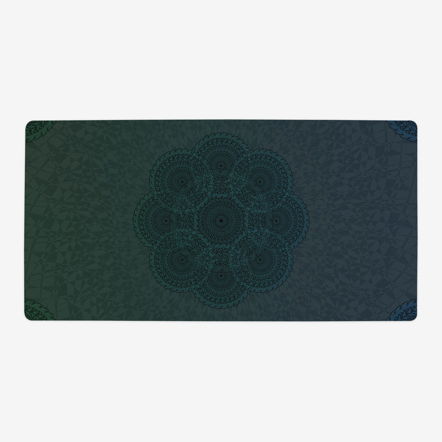 Standard Playmat measures at 24” x 14” inches and is 1/16 of an inch thick. It’s made with a smooth cloth top and strong rubber backing.
