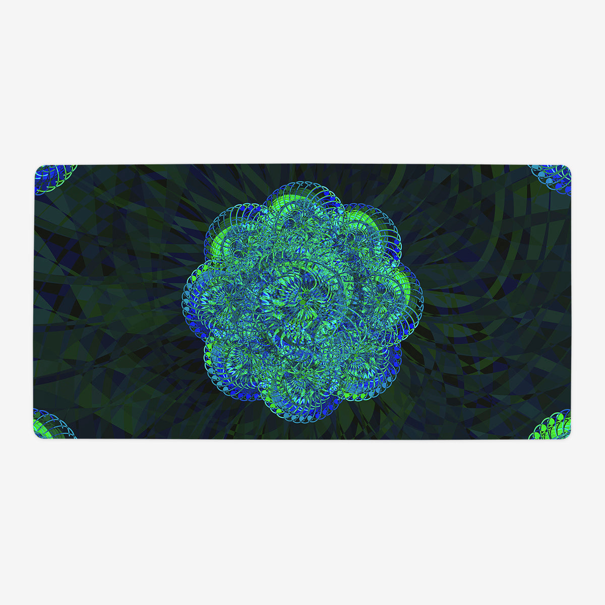 Oversized Playmat measures at 28” x 14” inches and is 1/16 of an inch thick. It’s made with a smooth cloth top and strong rubber backing.