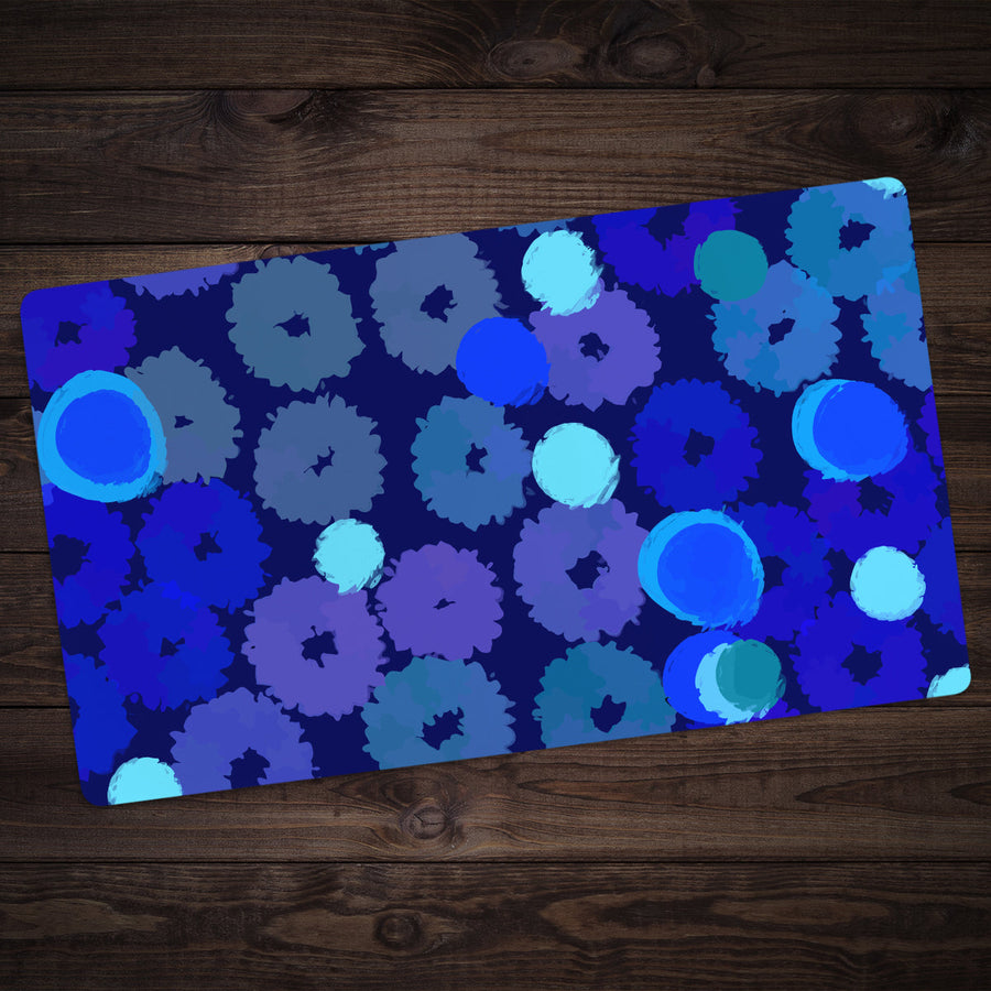 Standard Playmat measures at 24” x 14” inches and is 1/16 of an inch thick. It’s made with a smooth cloth top and strong rubber backing.