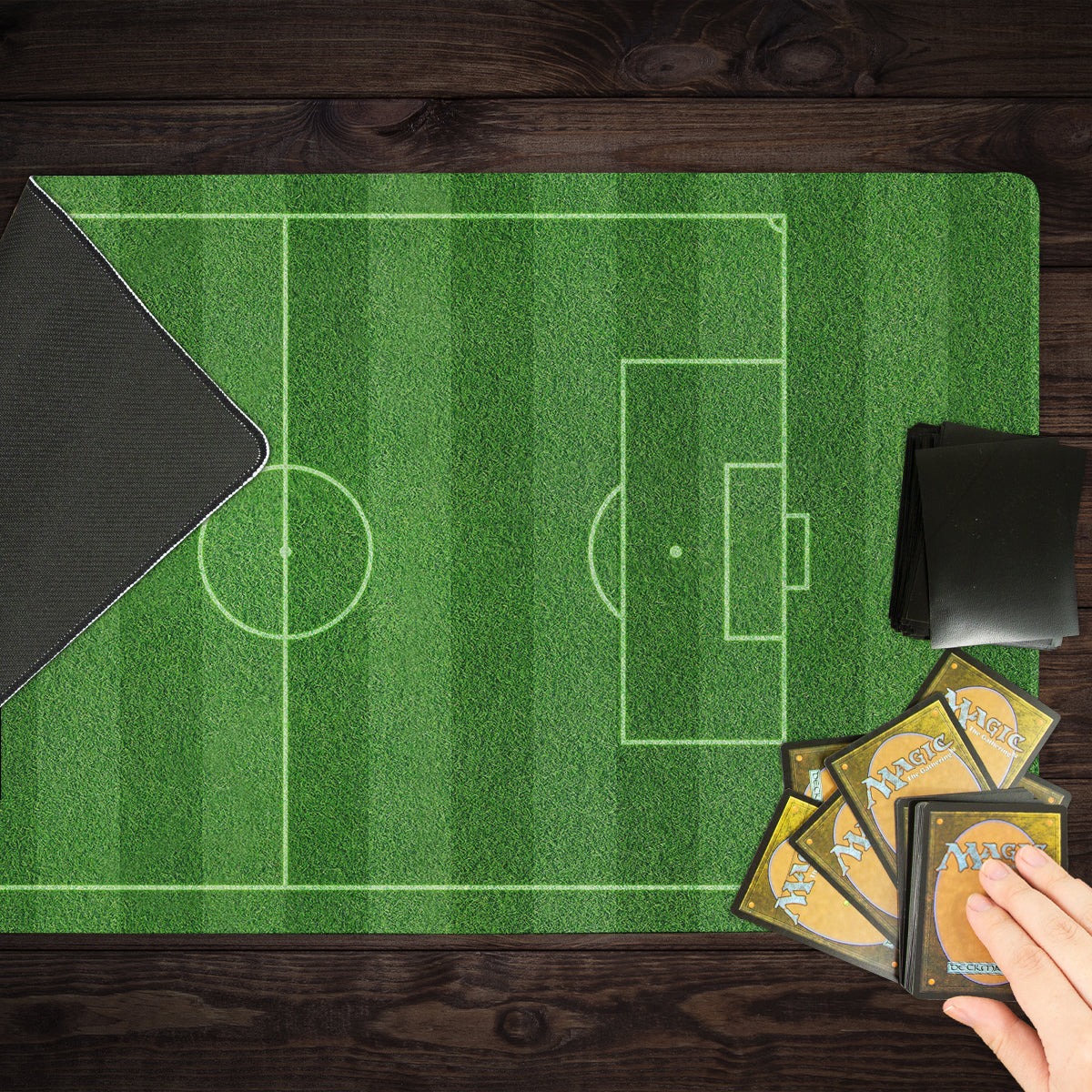 Standard Playmat measures at 24” x 14” inches and is 1/16 of an inch thick. It’s made with a smooth cloth top and strong rubber backing.