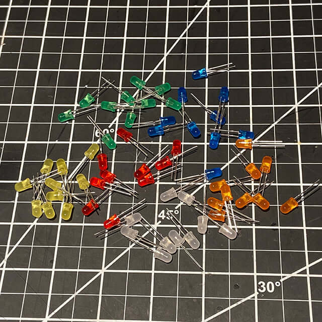 Everyone needs LEDs! This pack of standard 5mm LEDs contains 10 each of 6 colors; Red, Blue, Green, White, Yellow and Orange.