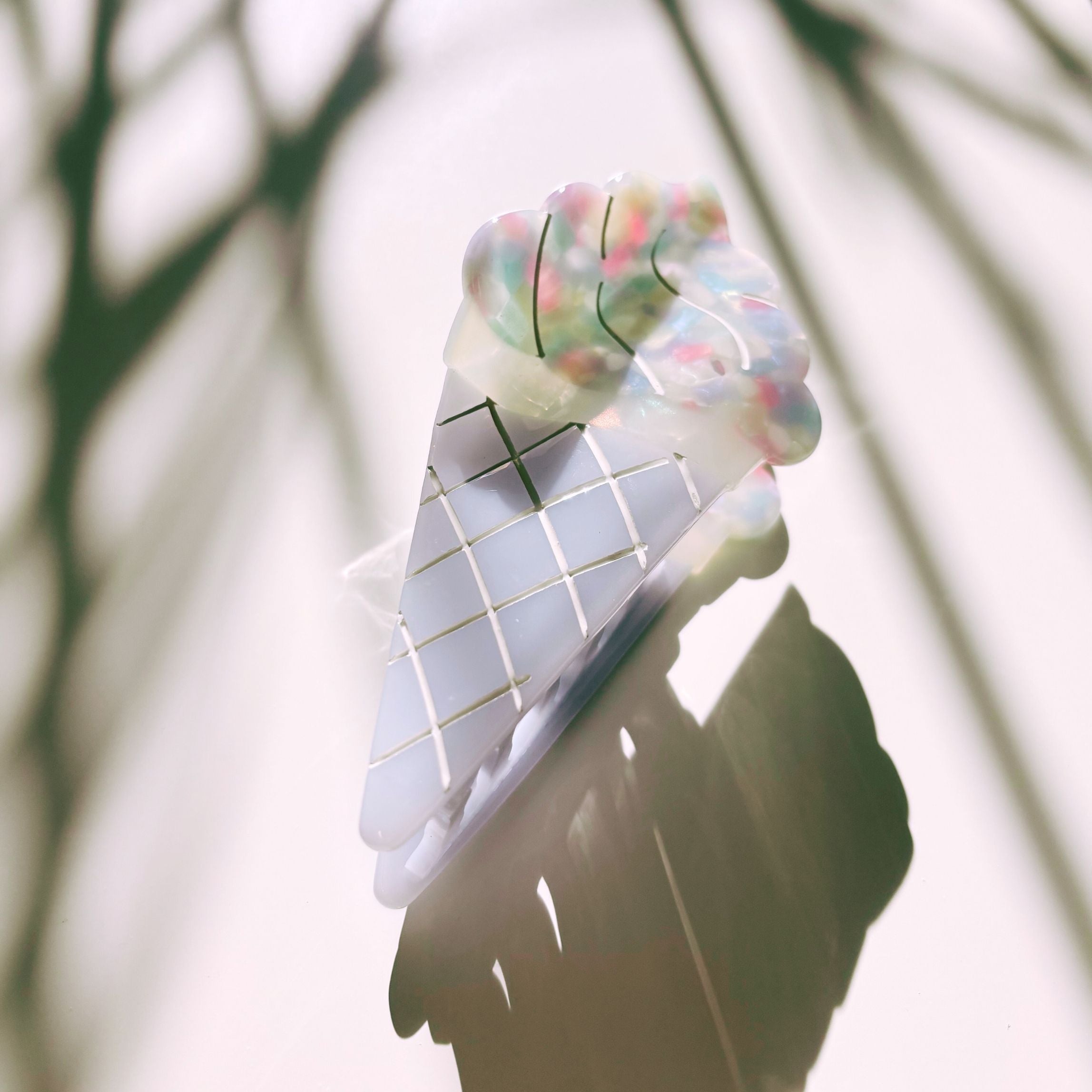 Sweeten your style with this adorable ice cream cone-inspired claw clip in a dreamy frosty blue hue. Designed for a secure hold and all-day comfort, it comes with a soft velvet travel bag for easy storage. A playful yet chic treat for your hair! 🍦❄️💙