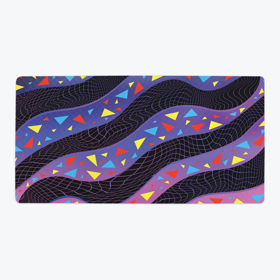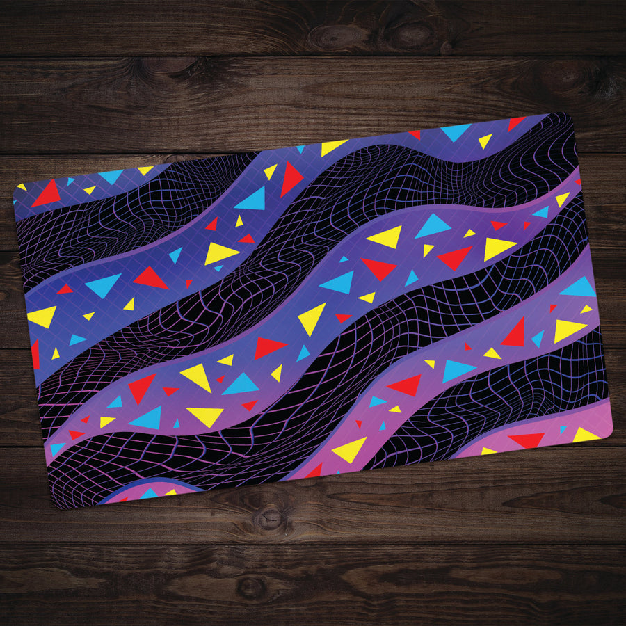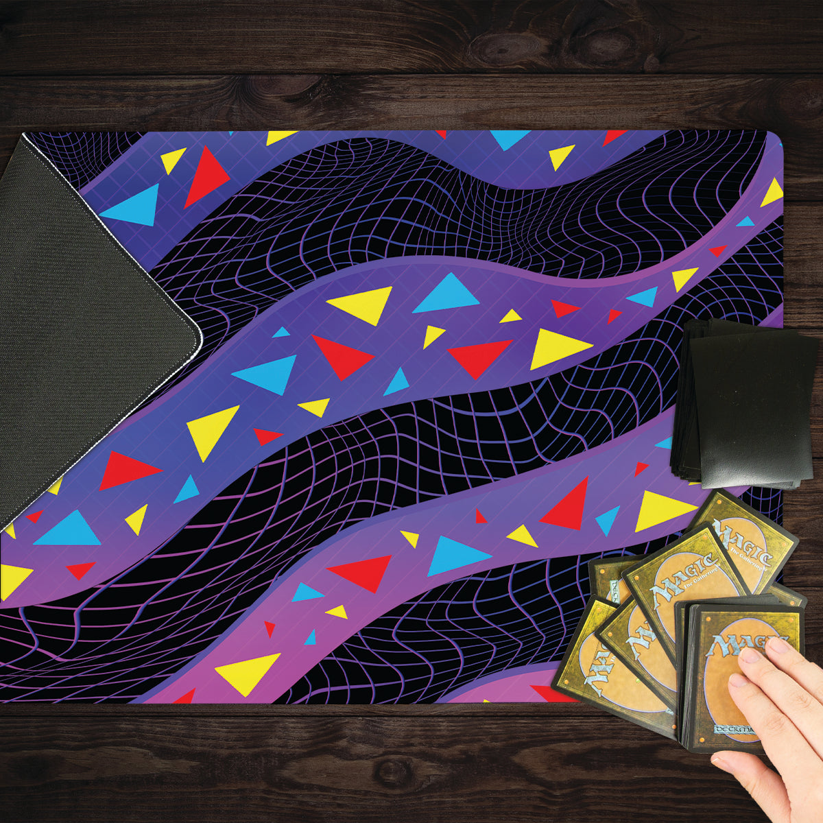 Standard Playmat measures at 24” x 14” inches and is 1/16 of an inch thick. It’s made with a smooth cloth top and strong rubber backing.