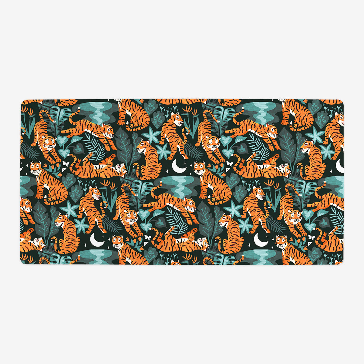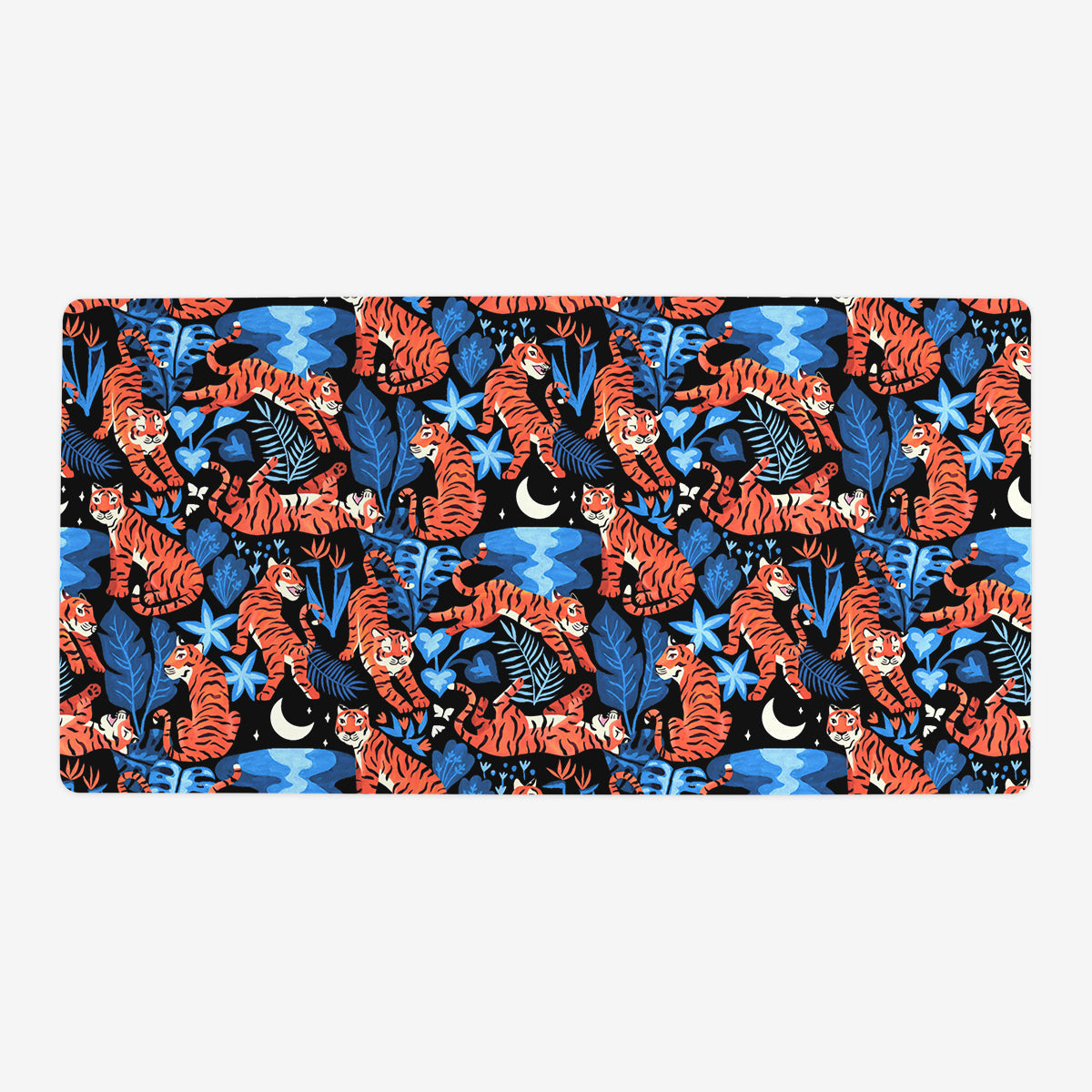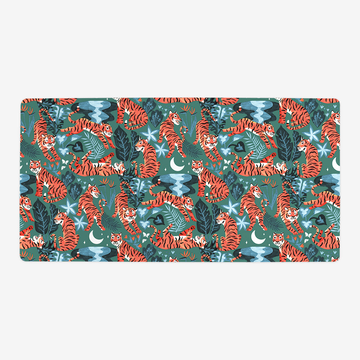 Oversized Playmat measures at 28” x 14” inches and is 1/16 of an inch thick. It’s made with a smooth cloth top and strong rubber backing.