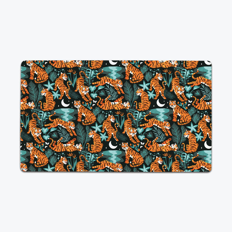 Standard Playmat measures at 24” x 14” inches and is 1/16 of an inch thick. It’s made with a smooth cloth top and strong rubber backing.