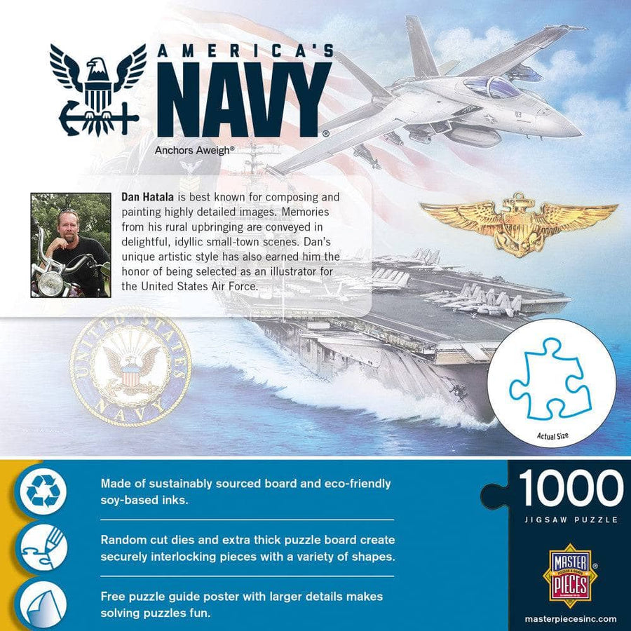 Step into the world of naval excellence with this MasterPieces 1000 Piece Jigsaw Puzzle featuring captivating imagery of the U.S. Navy. Spanning 19.25 inches by 26.75 inches, this puzzle offers a challenging yet rewarding experience for puzzle enthusiasts of all skill levels. Crafted with meticulous attention to detail, each puzzle piece is uniquely cut with a die to ensure a tight interlocking fit. The result? A seamless assembly process that guarantees hours of entertainment for the whole family. But it's not just about the puzzle—MasterPieces is committed to sustainability. That's why this puzzle is made from 100% recycled cardboard and printed with non-toxic, soy-based inks. So not only are you enjoying a high-quality puzzle, but you're also helping to protect the planet. From its stunning imagery to its eco-friendly materials, this puzzle is more than just a game—it's a celebration of naval history and a testament to the bond shared by puzzle enthusiasts around the world. So gather your crew, clear your table, and embark on an unforgettable journey with this MasterPieces 1000 Piece Jigsaw Puzzle. With every piece you connect, you're not just completing a puzzle—you're creating memories that will last a lifetime.