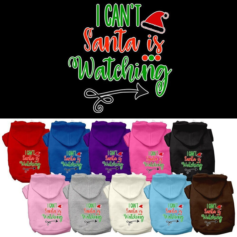 Christmas Pet Dog & Cat Hoodie Screen Printed, "I Can't, Santa Is Watching"