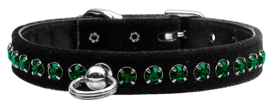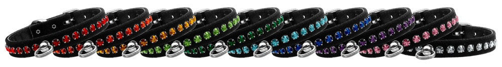 Simple yet elegant! These ½" wide collars are made from our wonderful black velveteen material and come expertly enhanced with one row of large prong-set rhinestones, and has a center dee for a leash to attach.