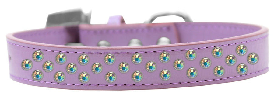 These stellar 3 Row Crystal Collars, which we lovingly call our "Sprinkles" line are a faux leather, featuring crystals around the outside. This collar is available in multiple collar/stone colors, and an array of sizes. These soft collars are 3/4" wide and comes with a beautiful crystal buckle and features three sprinkled rows of crystal stones.