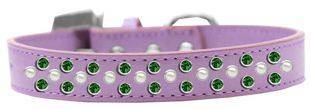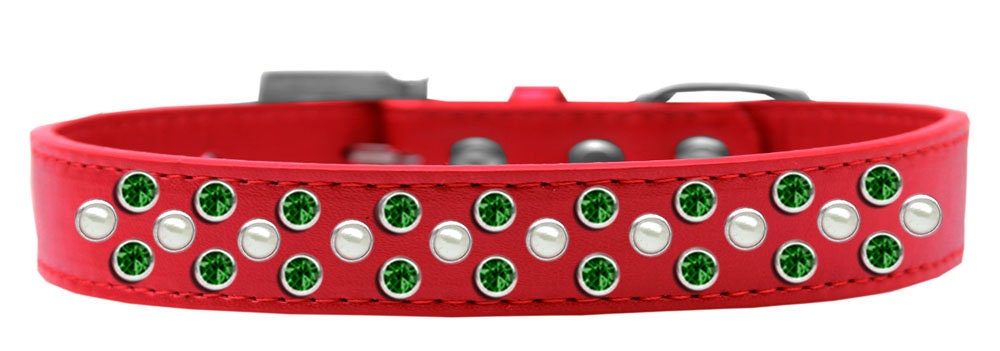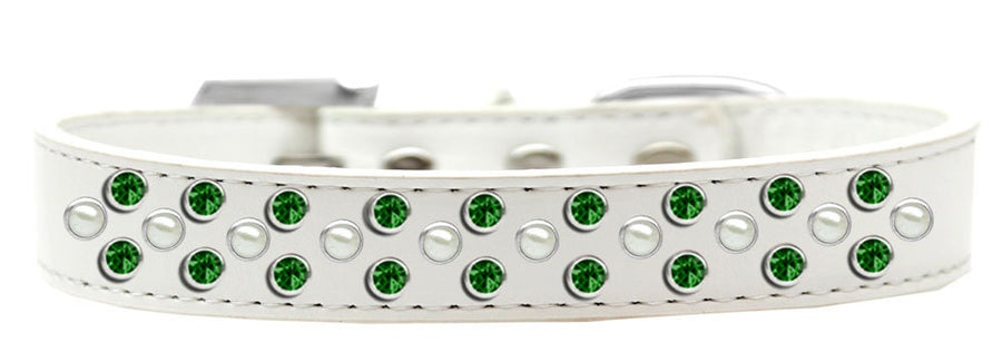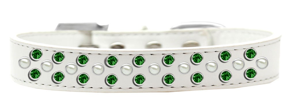 Dog, Puppy & Pet Fashion Collar, "Pearl and Emerald Green Crystal Rimsets Sprinkles"