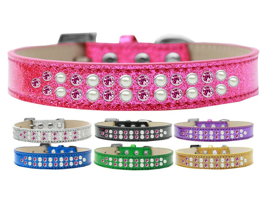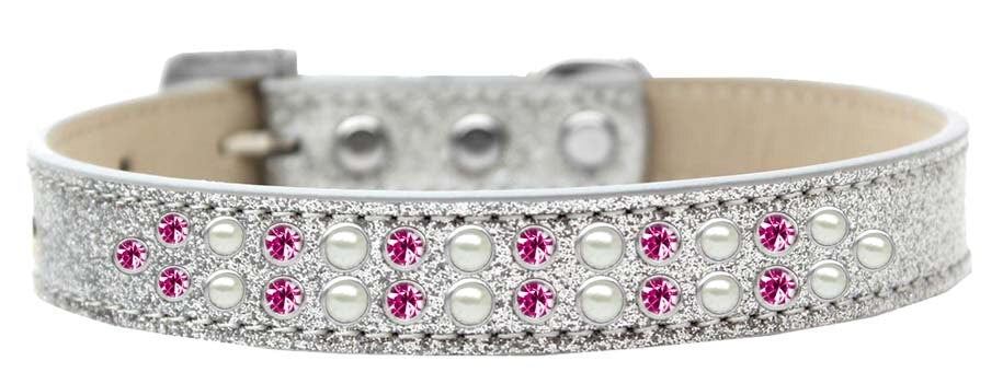 These soft Glittery Collars are 3/4" wide and comes with a beautiful crystal buckle and features two rows of pearl and bright pink crystal stones.