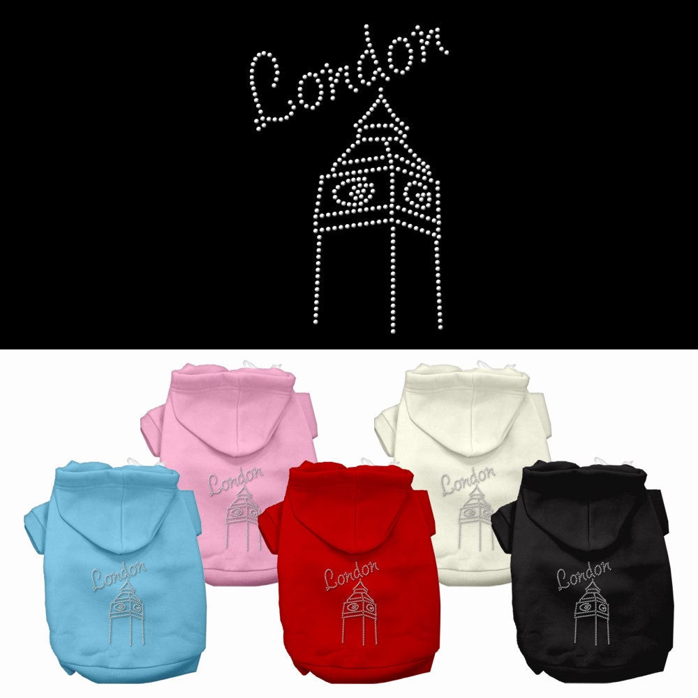 Pet, Dog & Cat Hoodie Rhinestone, "London"