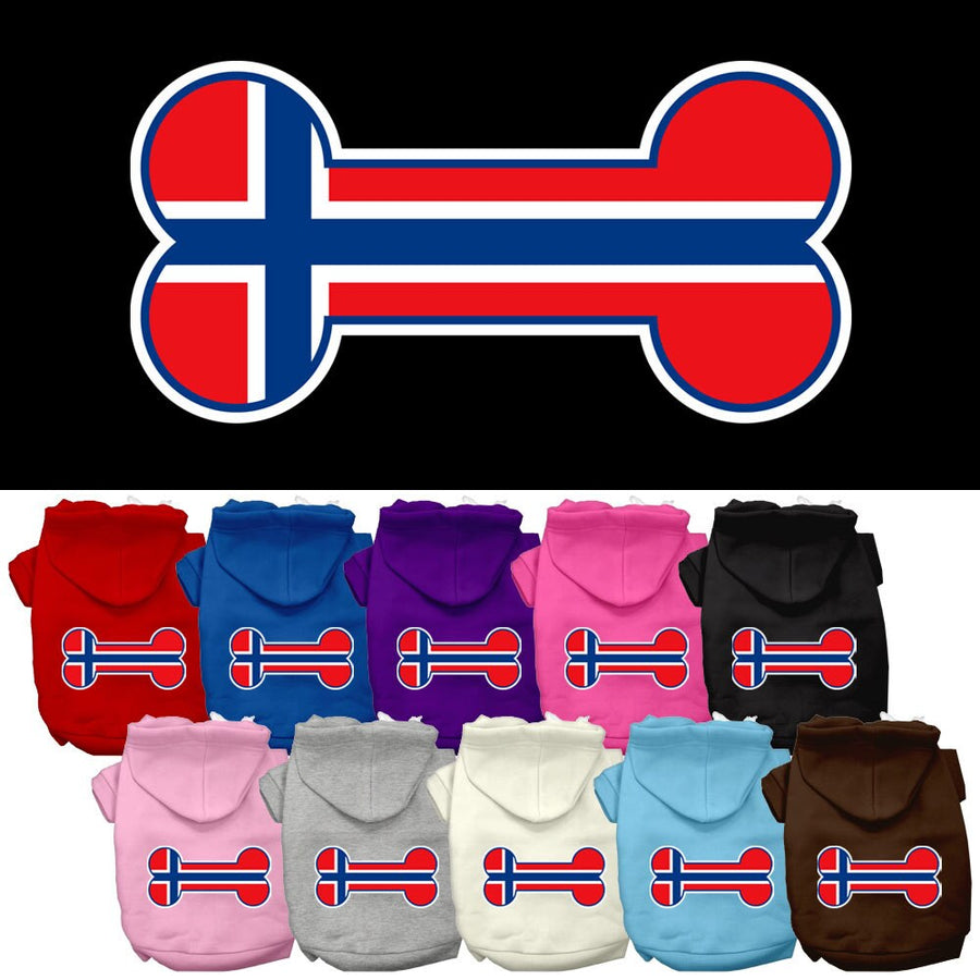 Pet, Dog & Cat Hoodie Screen Printed, "Bone Shaped Norway Flag"