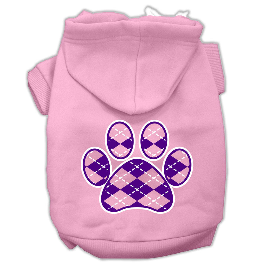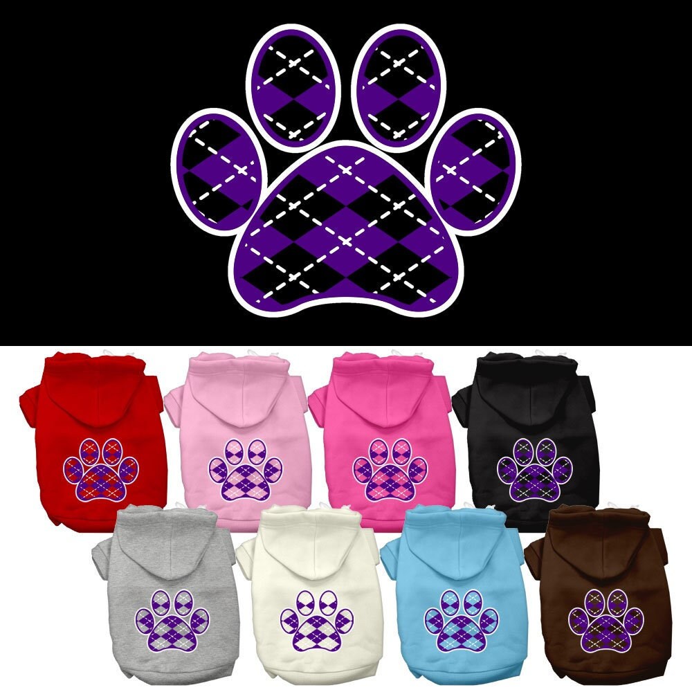 Pet Dog & Cat Hoodie Screen Printed, "Purple Argyle Paw"