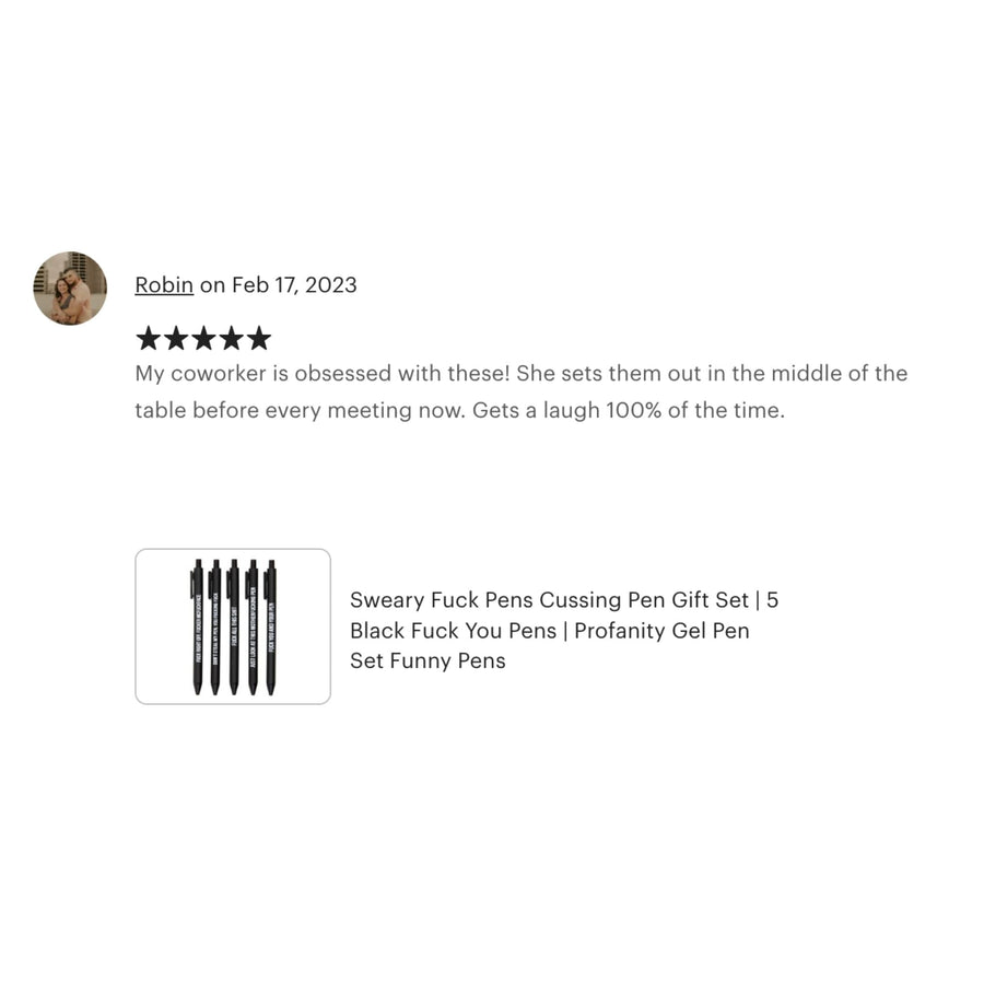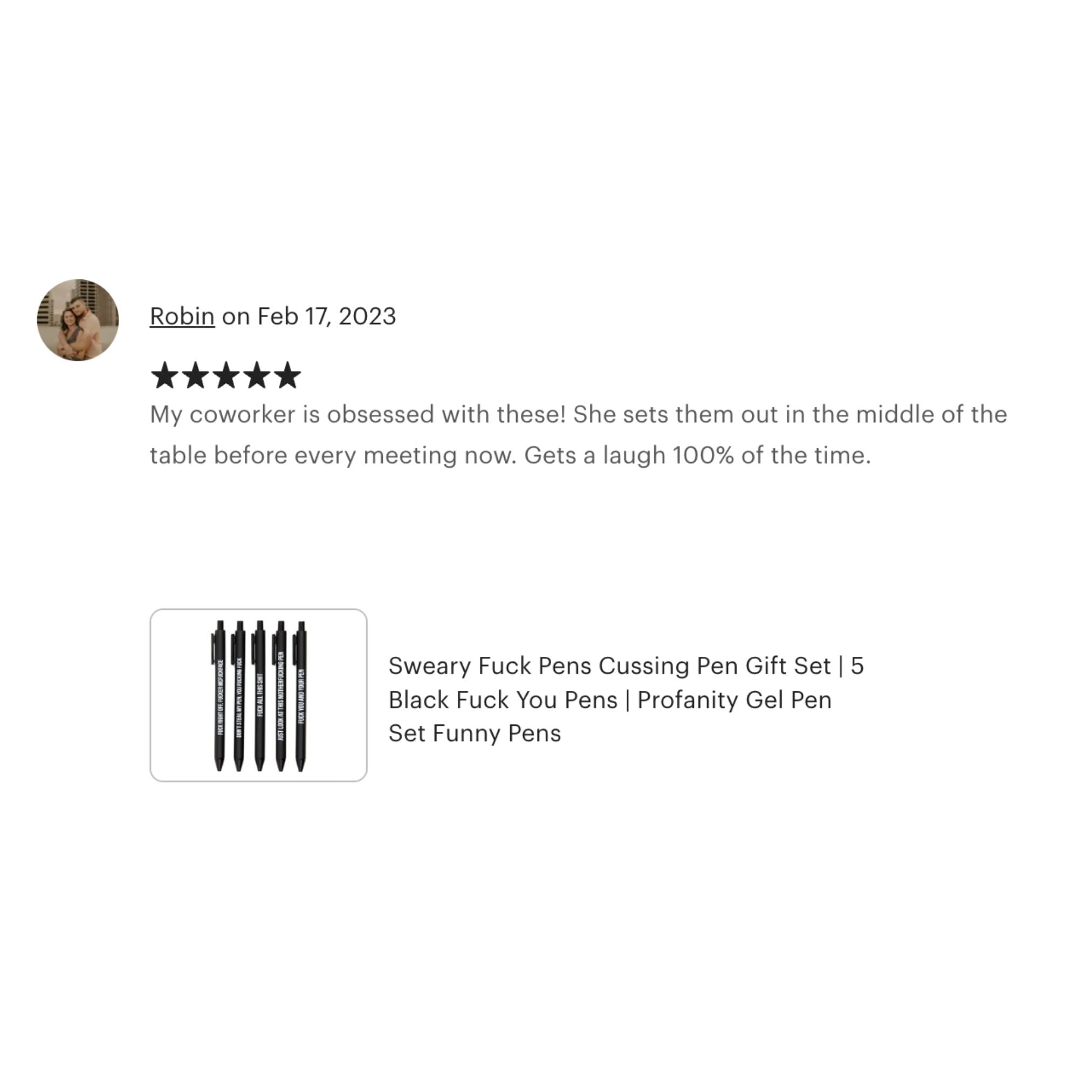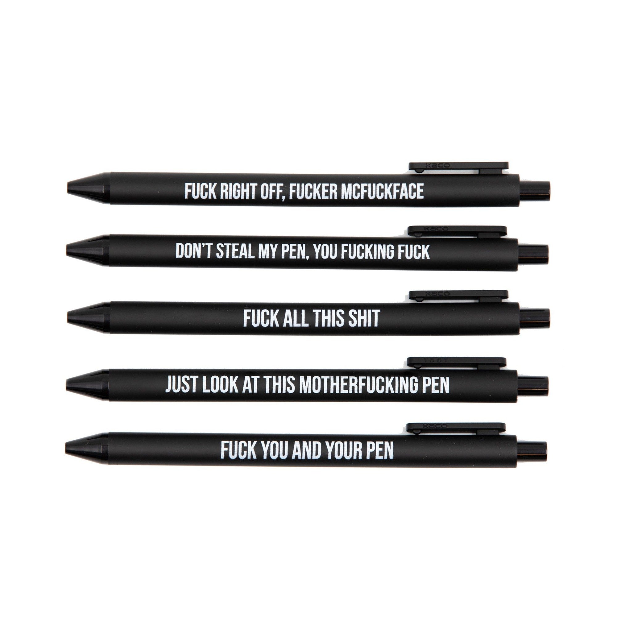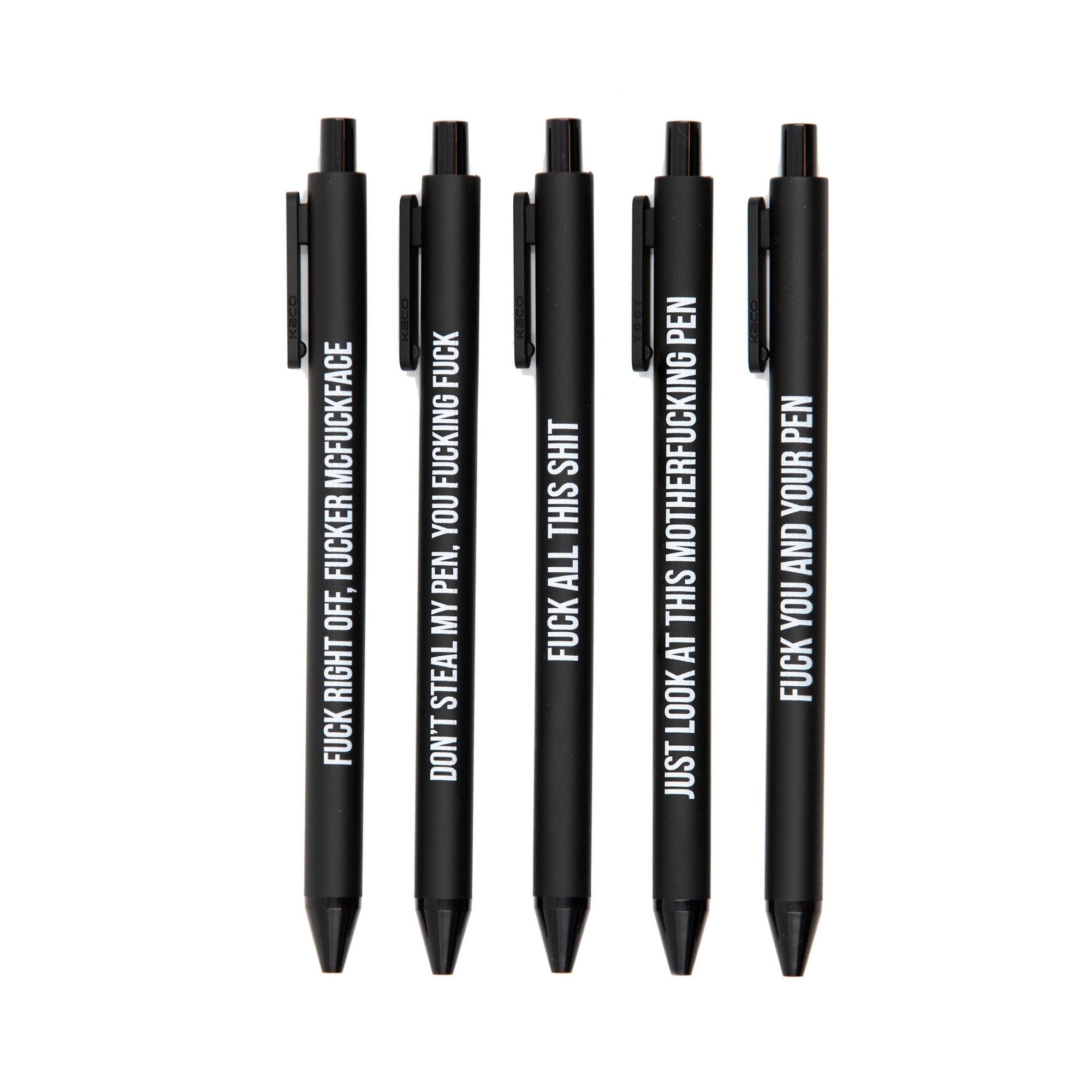 Sweary Fuck Pens Cussing Pen Gift Set - 5 Black Gel Pens Rife with Profanity