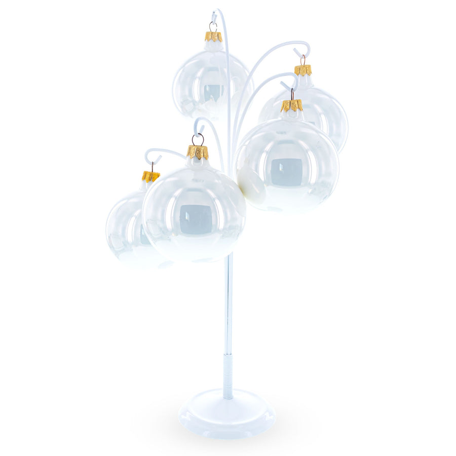 Add a touch of sculptural elegance to your display with this 14.5-inch 5-arm ornament stand, crafted in Poland from white painted metal. The stand features five gracefully curled arms that extend outward in a floral or tree-like pattern, offering multiple points to showcase your favorite hanging ornaments, charms, or collectibles. Its vertical design and artistic scrollwork provide both functionality and decorative appeal, making it ideal for holiday décor, weddings, or year-round home styling. The weighted round base ensures stability while complementing the overall sophisticated look. A beautiful blend of craftsmanship and style, perfect for those who appreciate both form and function.