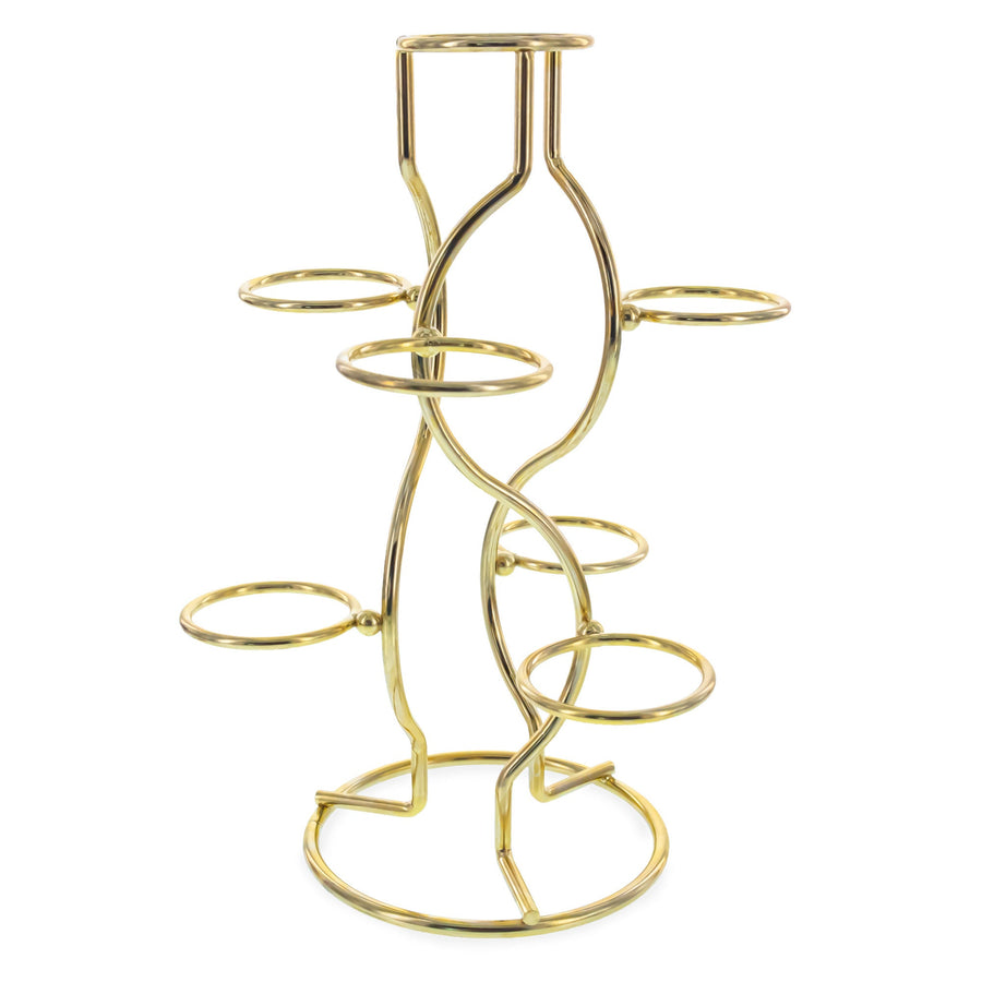 Crafted from durable metal with a radiant gold-tone finish, this stand offers both stability and sophistication. Each of the seven circular holders is thoughtfully spaced for balance and clear visibility, allowing each item to stand out beautifully.