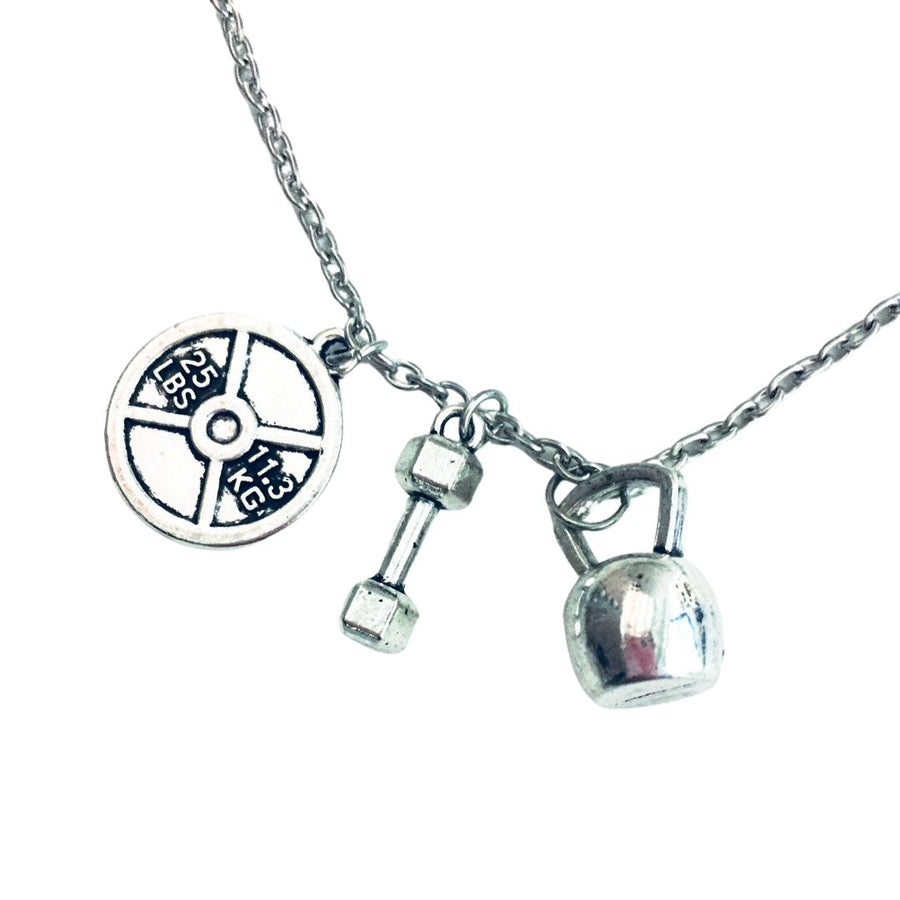 Badass Weightlifter Triple Charm Necklace in Silvertone