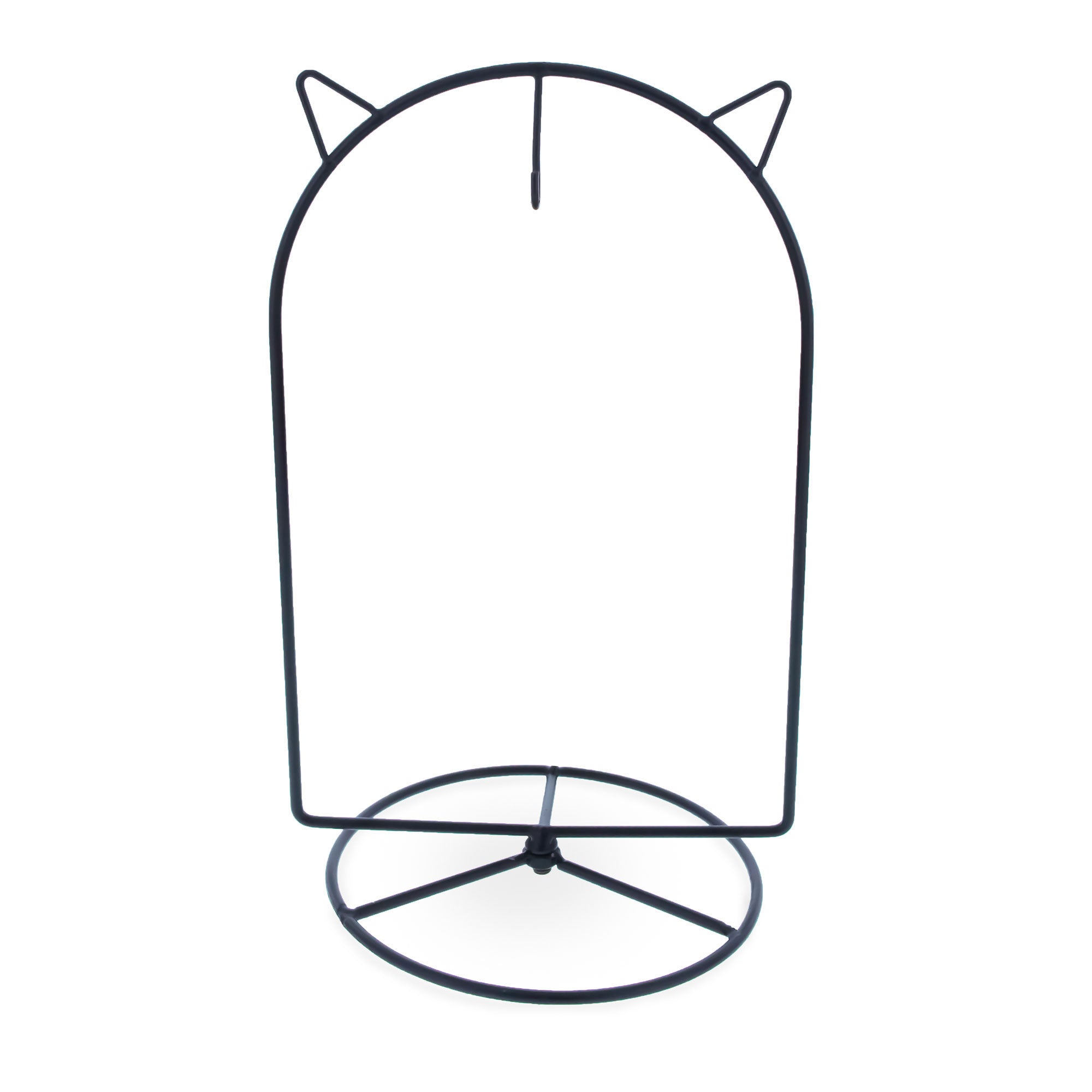 Add a playful yet modern touch to your display with this cat ear silhouette ornament stand. Crafted from sturdy matte black metal, it features a minimalist arched frame with two pointed accents resembling cat ears—perfect for animal lovers or whimsical décor themes. The single hanging hook allows for showcasing ornaments, crystals, or other lightweight decorations, while the circular base ensures stable support. Great for gifts, themed rooms, or holiday displays, this stand combines charm with clean, contemporary design.