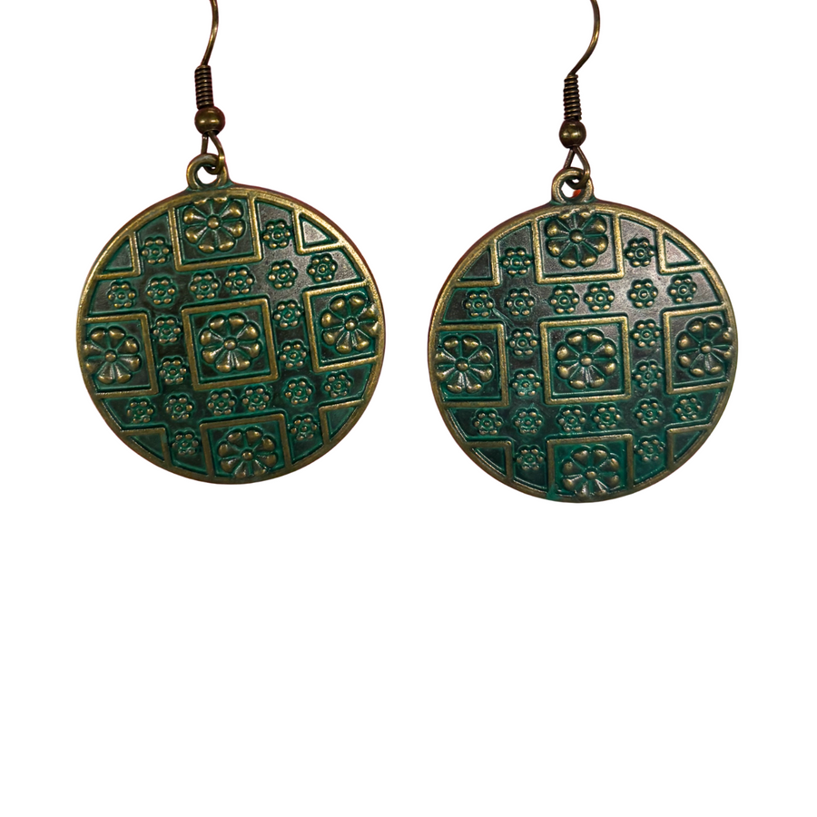 Add the perfect touch of casual elegance with these brass round drop earrings. Gold with a patina, as though these jangly baubles were true vintage finds.