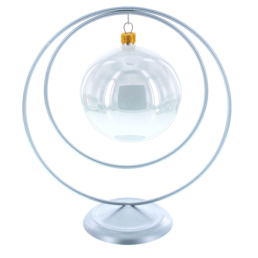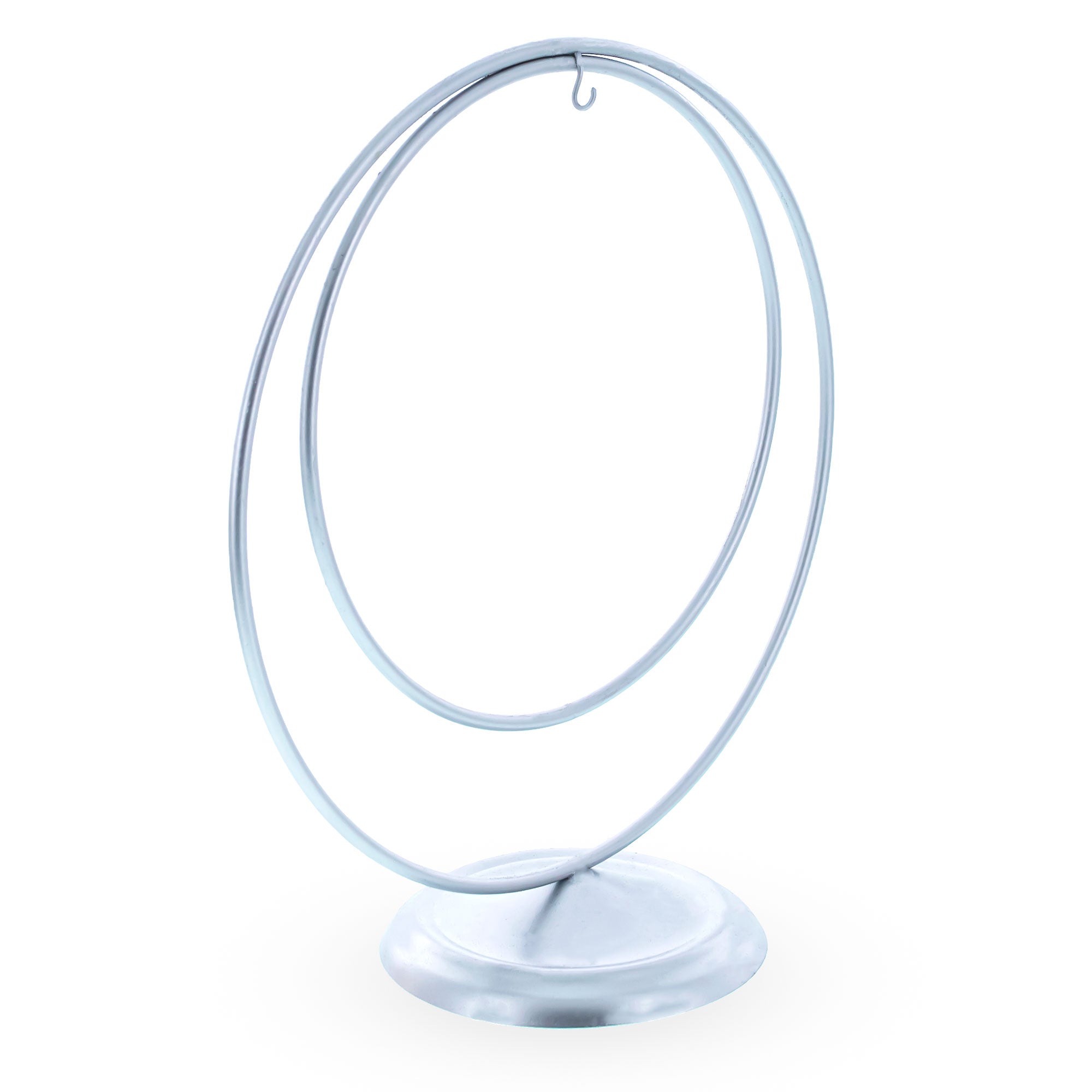 Showcase your favorite ornaments in modern elegance with this 8.2-inch double circle display stand. Crafted from smooth silver-coated metal, its minimalist design features two concentric hoops that create a striking geometric silhouette. The balanced frame holds your ornament securely at center stage, making it perfect for highlighting delicate baubles, crystals, or keepsakes. A wide, rounded base ensures stability on shelves, mantels, or countertops. Ideal for holiday décor, special gifts, or year-round displays, this stand blends contemporary style with timeless simplicity.