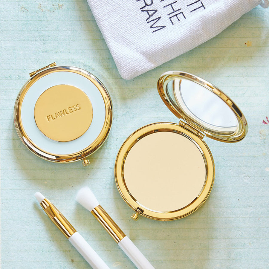 Whether you're touching up your lipstick or taking the perfect selfie, the Flawless Compact Mirror is a must-have accessory for your purse. This dual-sided mirror comes in a drawstring muslin bag, making it the ideal gift for the fashion-forward friend in your life.