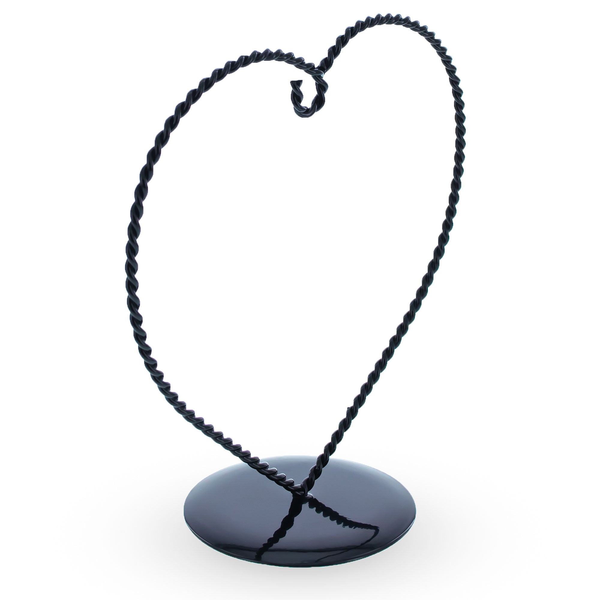 Celebrate love and elegance with this 6.2-inch heart-shaped ornament display stand. Crafted from twisted black painted metal, its romantic silhouette brings warmth and charm to any setting. The curled hook at the top provides a secure spot for hanging lightweight ornaments, keepsakes, or charms. Supported by a smooth, round base, this stand offers both stability and delicate style, making it ideal for gifting occasions, wedding favors, holiday décor, or everyday display. Its compact size fits beautifully on shelves, desks, or mantels—perfect for adding a heartfelt touch to your space.