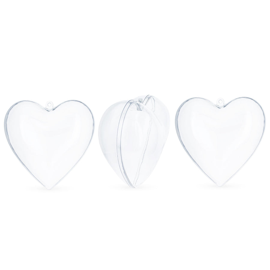 Set of 3 Clear Plastic Hearts Ornaments 2.45 Inches (62 mm)
