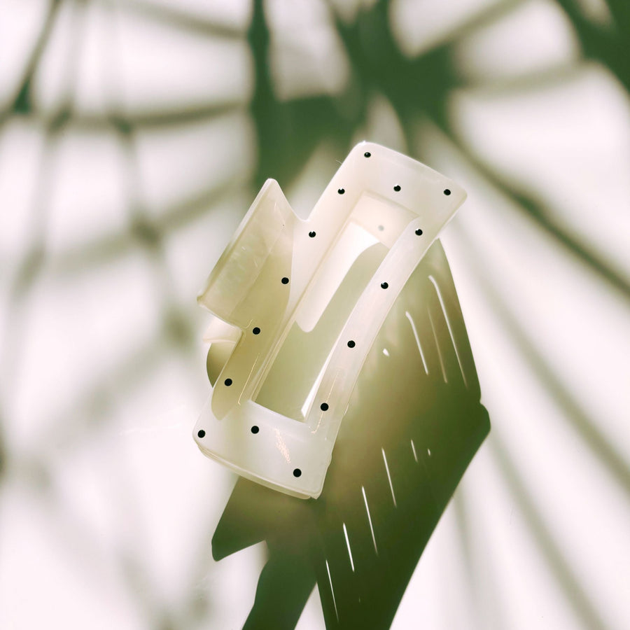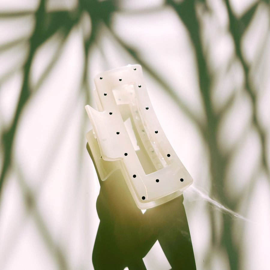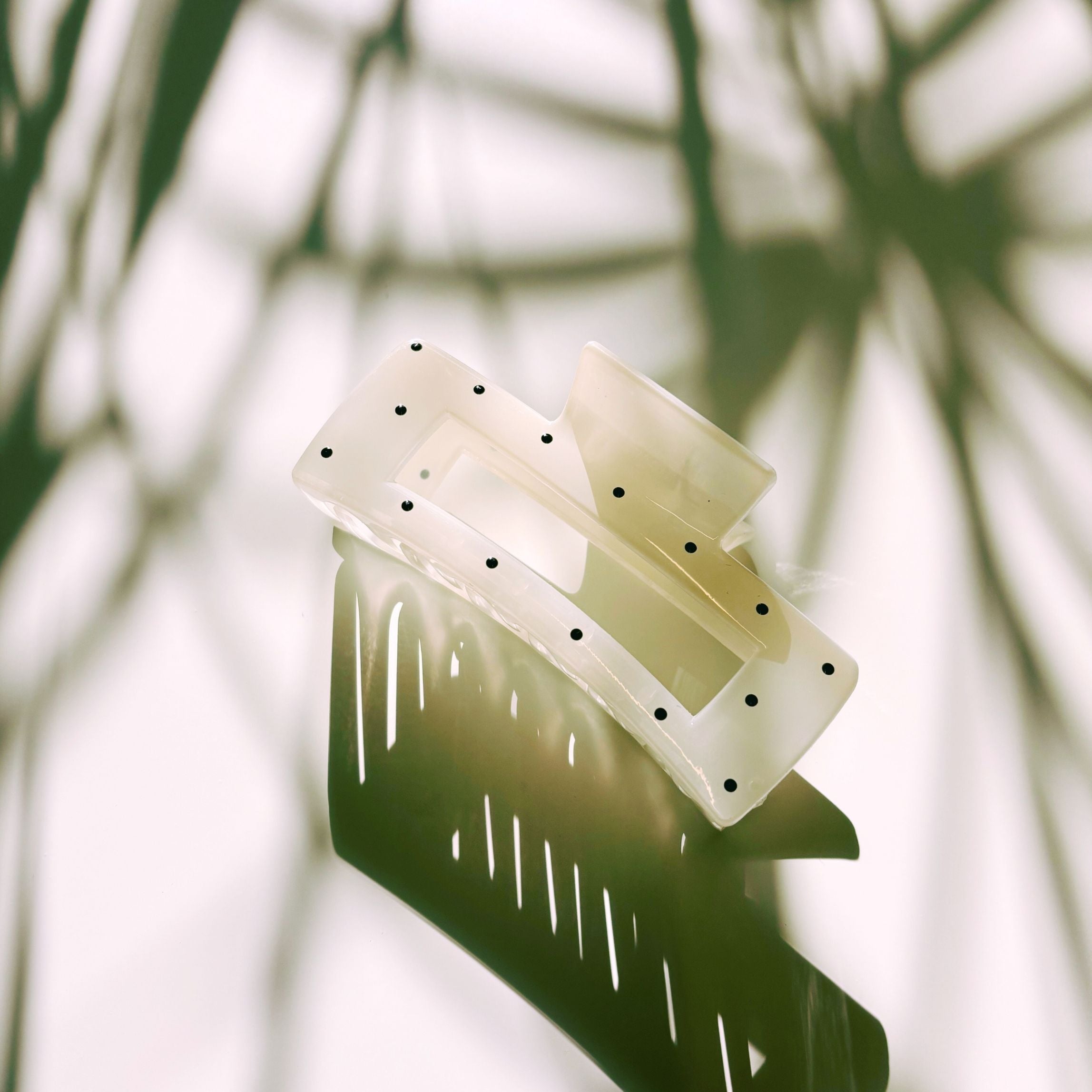 Classic elegance meets modern charm in this sophisticated claw clip. Featuring a chic black dot design, it offers a secure yet stylish hold for any hair type. Complete with a velvet travel bag, it’s the perfect accessory for effortless, on-the-go glam!