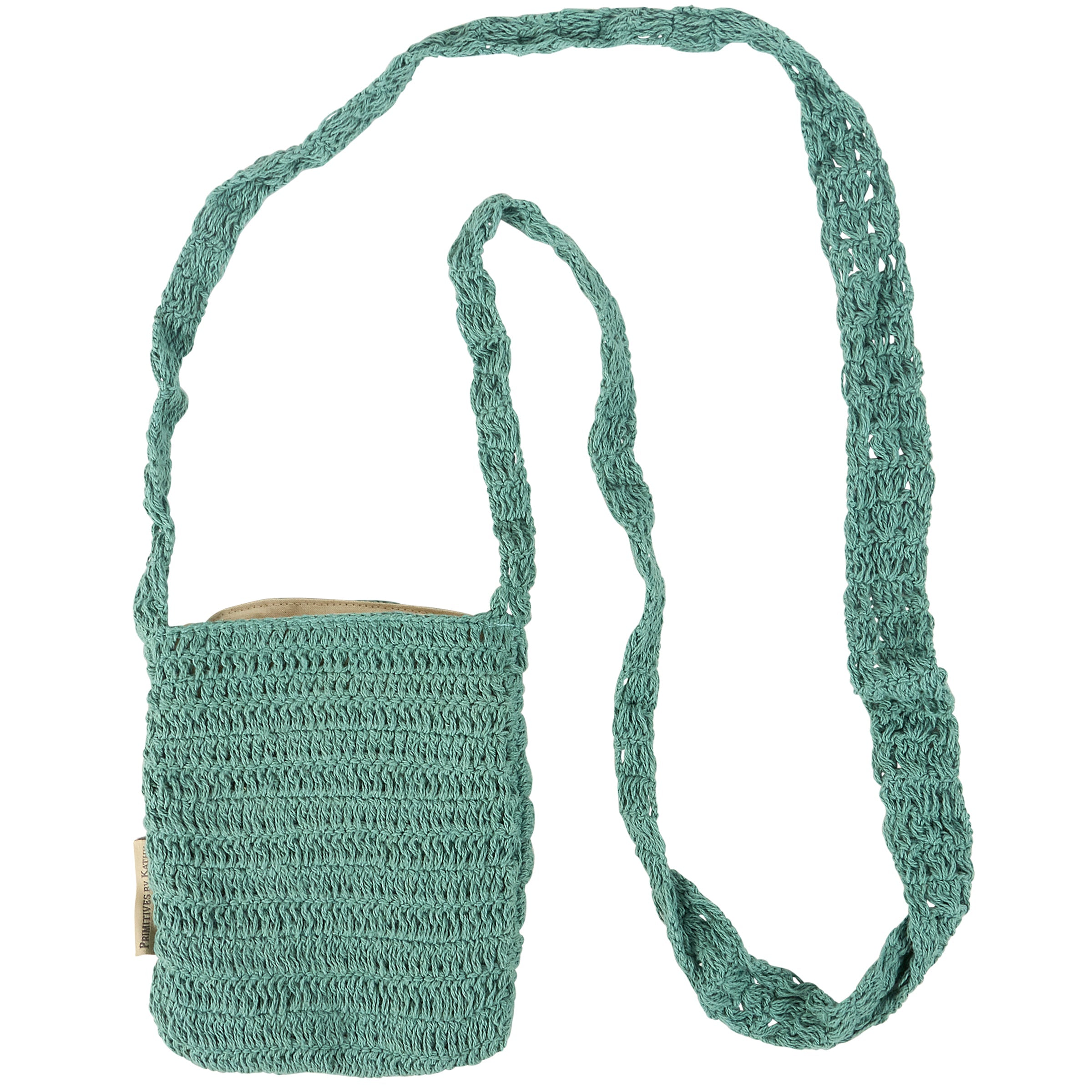 Crossbody bag features a unique crochet style for the shoulder strap and bag design. Shoulder strap features a 30 inch drop.