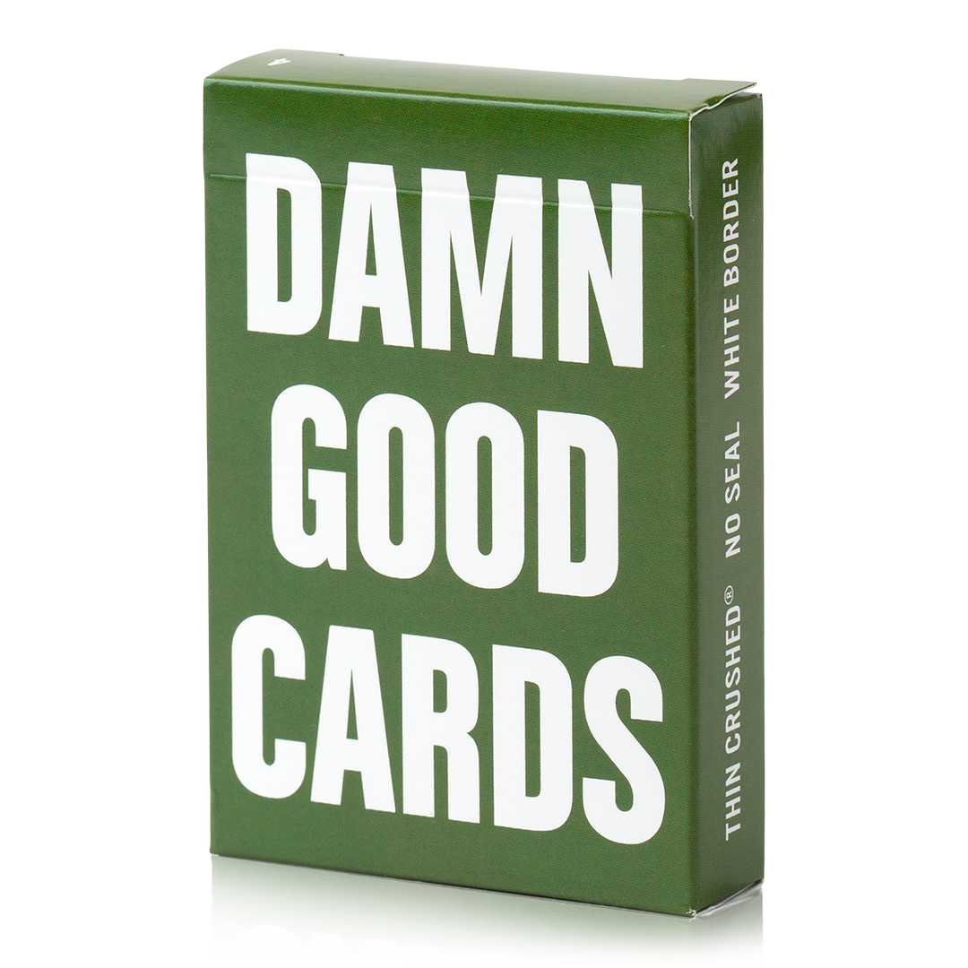 Experience the perfect blend of form and function with Damn Good Cards, No. 4 from Dan and Dave. These cards deliver exceptional performance that both dedicated cardists and professional magicians will appreciate. Printed on the renowned Thin Crushed® Stock, you'll immediately notice the superior handling—cards that fan smoothly, spring perfectly, and respond precisely to your touch. The tasteful design maintains a classic look with standardized faces and clean white borders with no seal, allowing your skills to take center stage. Each deck contains 56 regulation poker-size cards, crafted in the USA on FSC-certified paper, combining top-tier quality with environmental responsibility. When your performance demands nothing but the best, reach for cards worthy of their name—Damn Good.