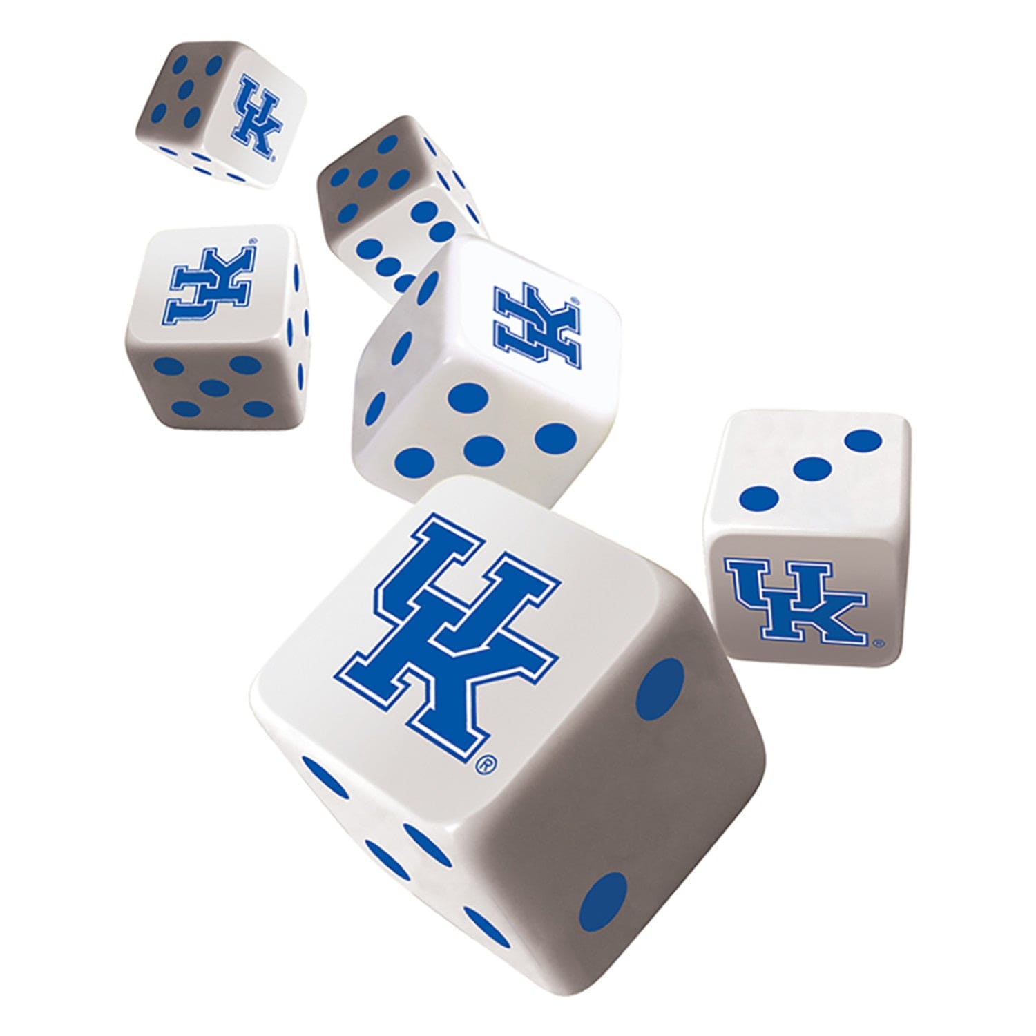 Ready to roll with your favorite NCAA team? Then do it with style and officially licensed dice! This 6-piece D6 gaming dice set from MasterPieces is perfect for Craps, Grand Hazard, Klondike, and any other dice game you can think of. Each die has the Kentucky Wildcats logo and colors prominently displayed, so you can show your team spirit while you roll. The dice are also standard size (16mm) so they're easy to grip and use. Suitable for ages 6 and up, this is a great gift for any Kentucky fan - or for anyone who loves to roll the dice!