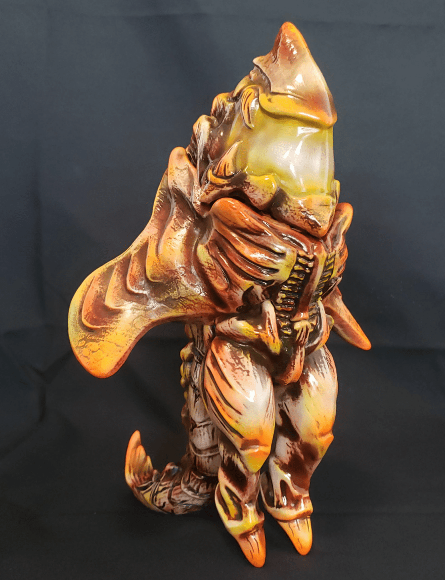 The next vinyl toy by Manta Toys: Manta X is a 10.5 in tall behemoth with removable helmet. This is the Flourescent Coral Edition, only 45 pieces for the North American market.