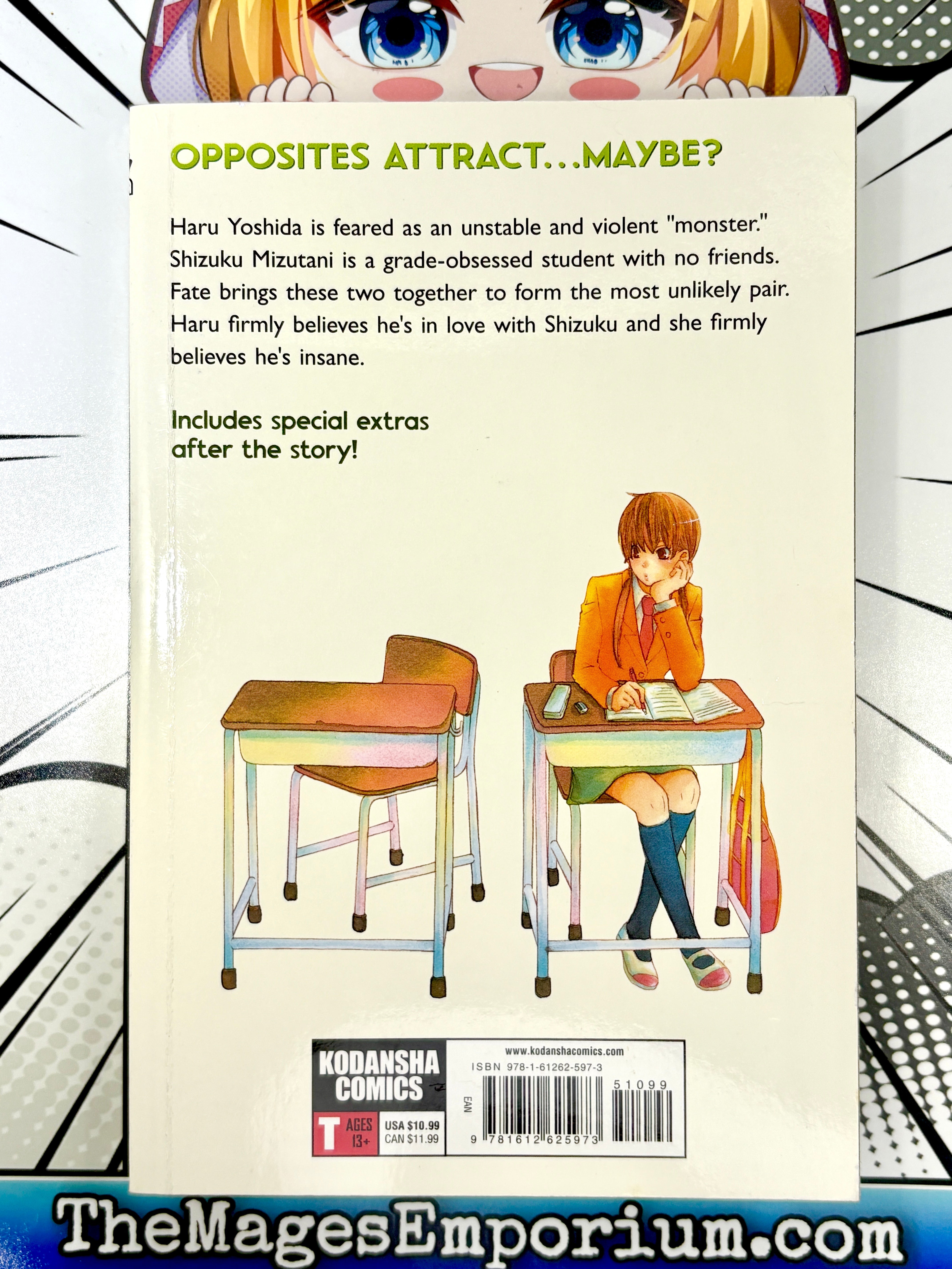 In this first volume, you'll meet Shizuku Mizutani, a studious and no-nonsense high school student who is solely focused on her academic goals. However, her life takes an unexpected turn when she is assigned the task of delivering class notes to Haru Yoshida, a notorious troublemaker who has been absent from school due to his violent tendencies.