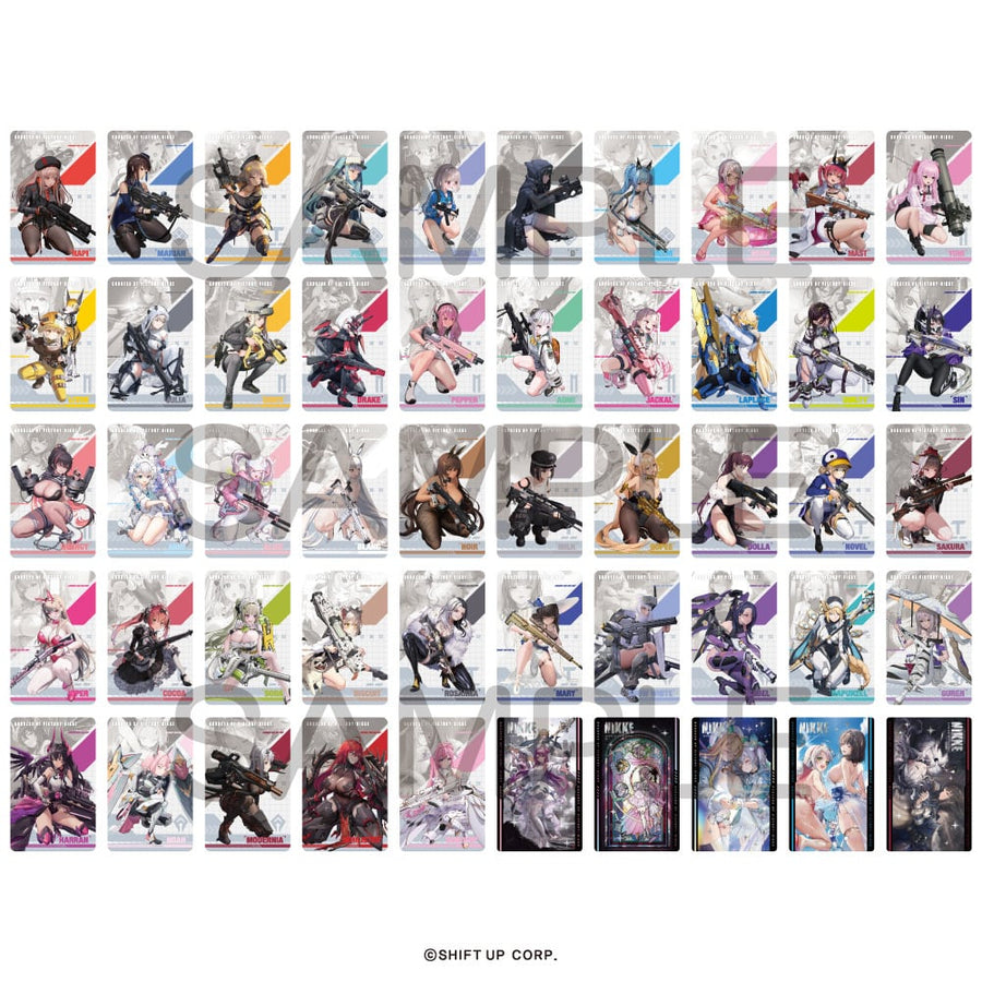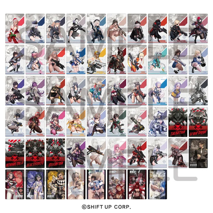 From the popular Gun Girl RPG, "Goddess of Victory: NIKKE", comes metallic double-sided cards of your favorite Nikkes.
