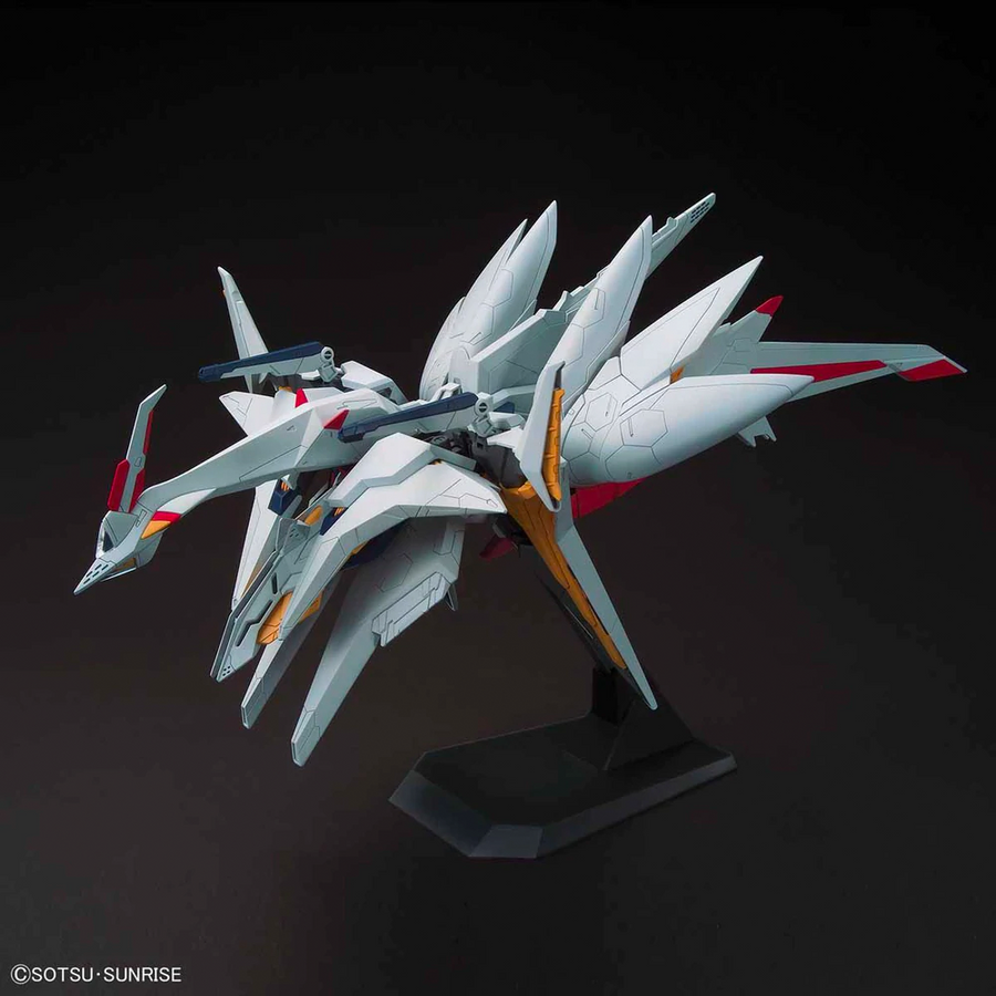 Standing over 9 inches tall when completed, the Penelope surpasses the height of most MG models despite being only 1/144 scale, and features a dense substructure layered by many parts. The Penelope can separate from its flight unit to its original Oddyseus Gundam base form and features beam rifle, shield, and beam sabers.