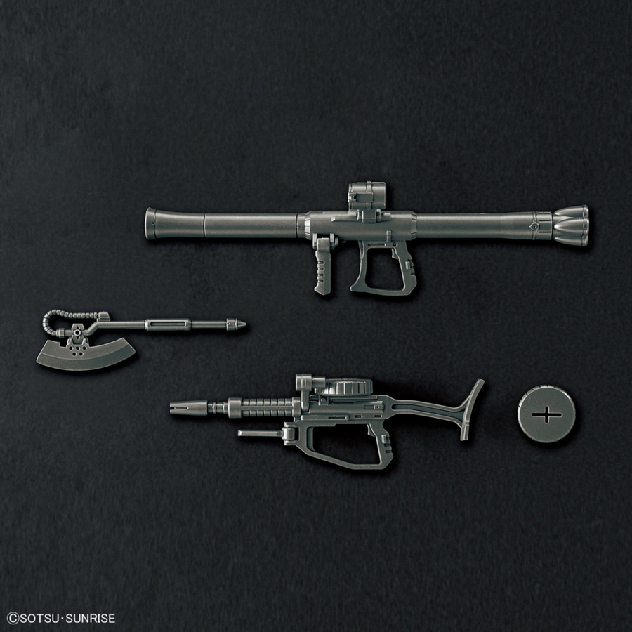 Based on the Mobile Suit Gundam anime series, this MS-06 Zaku II model kit is in 1/144 scale and becomes a fully articulated figure once built.