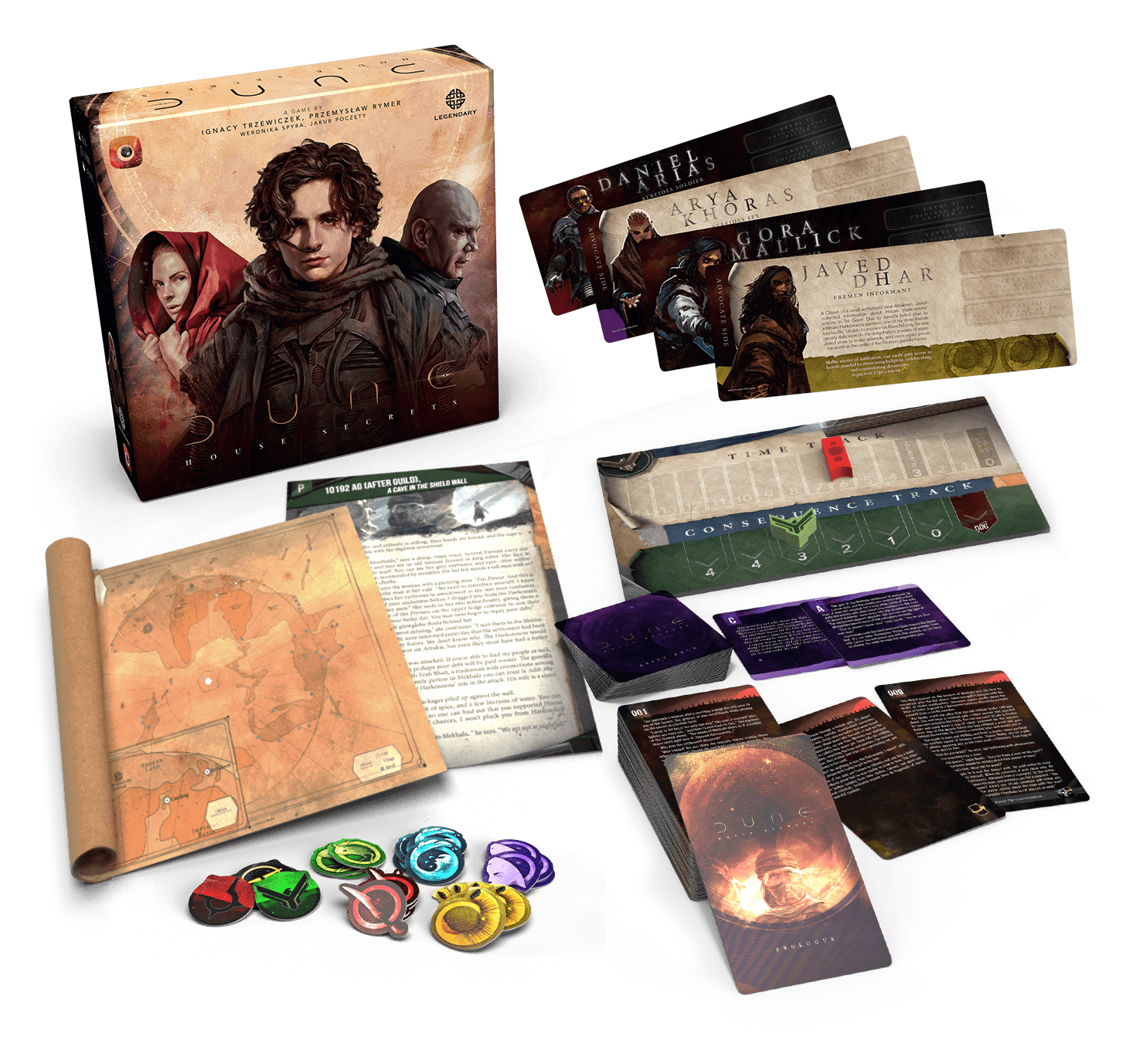 In Dune: House Secrets, players take on the roles of rebels who must solve a series of challenging missions with a finite amount of time and resources. Players cooperatively make decisions on how to progress the story.