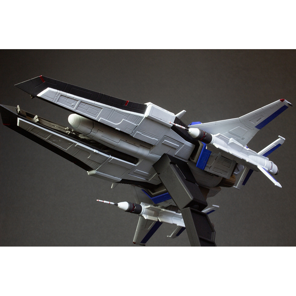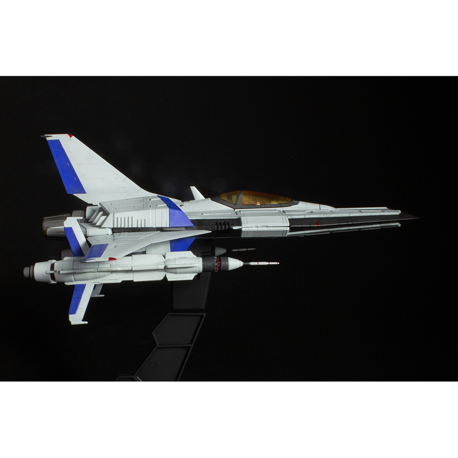 The video game Gradius first appeared in arcades in 1985. This Vic Viper spacecraft comes from "Gradius V" video game released in 2004. The model kit is molded in color so painting is not necessary, and a base for display is also provided.